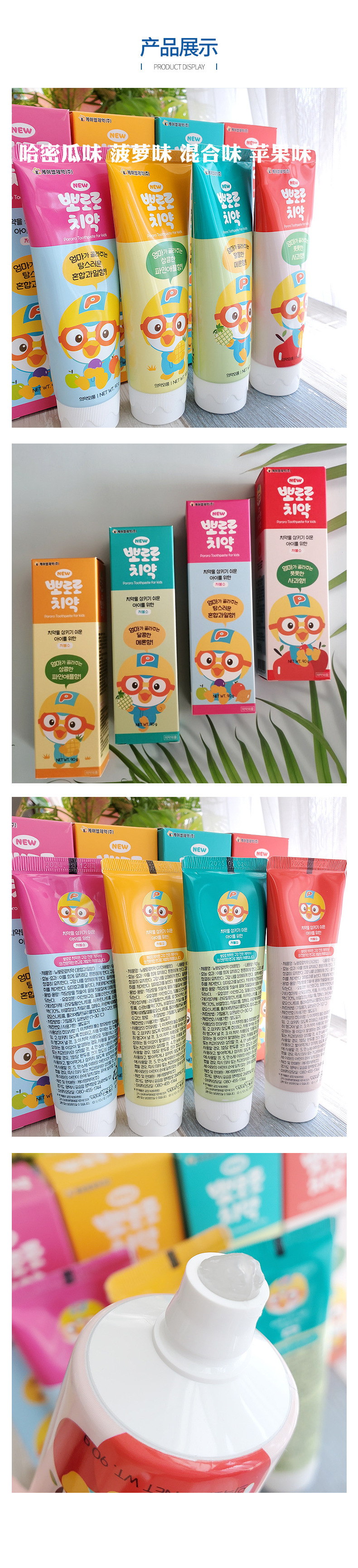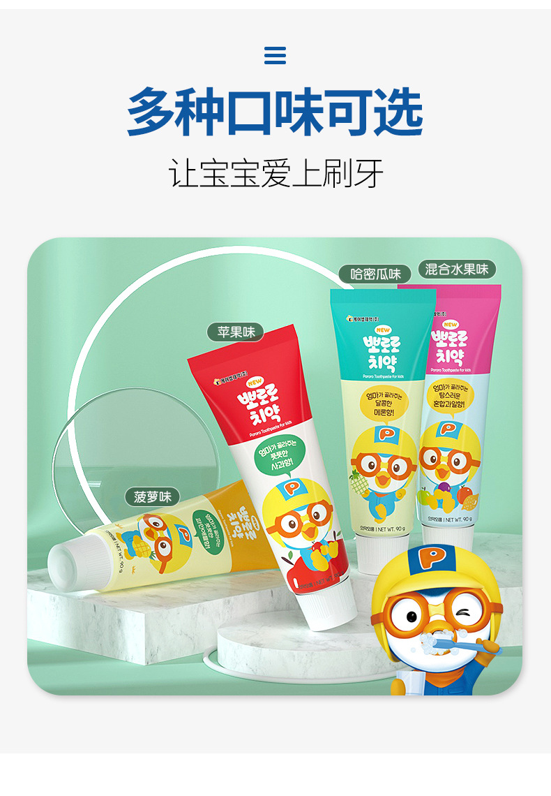 韓国のpororoは楽楽のペンギンの子供の歯磨き粉の果物の味の清新な口ぶりで歯の90gをきれいにします。