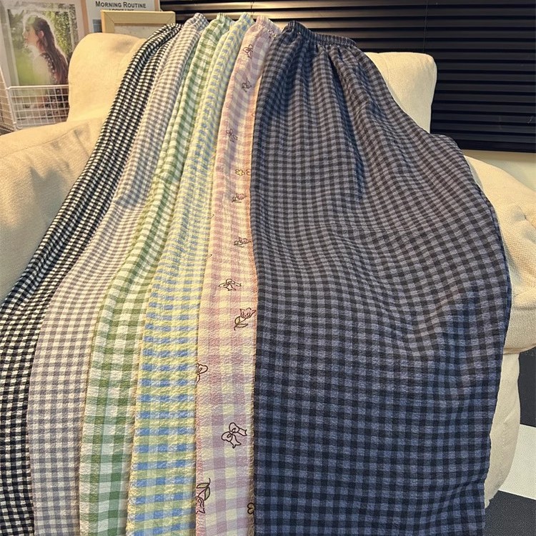 背の高い延長版の格子の寝ズボンの女性の薄いタイプの散歩の曲がったズボンは簡単でカジュアルでゆったりしています。