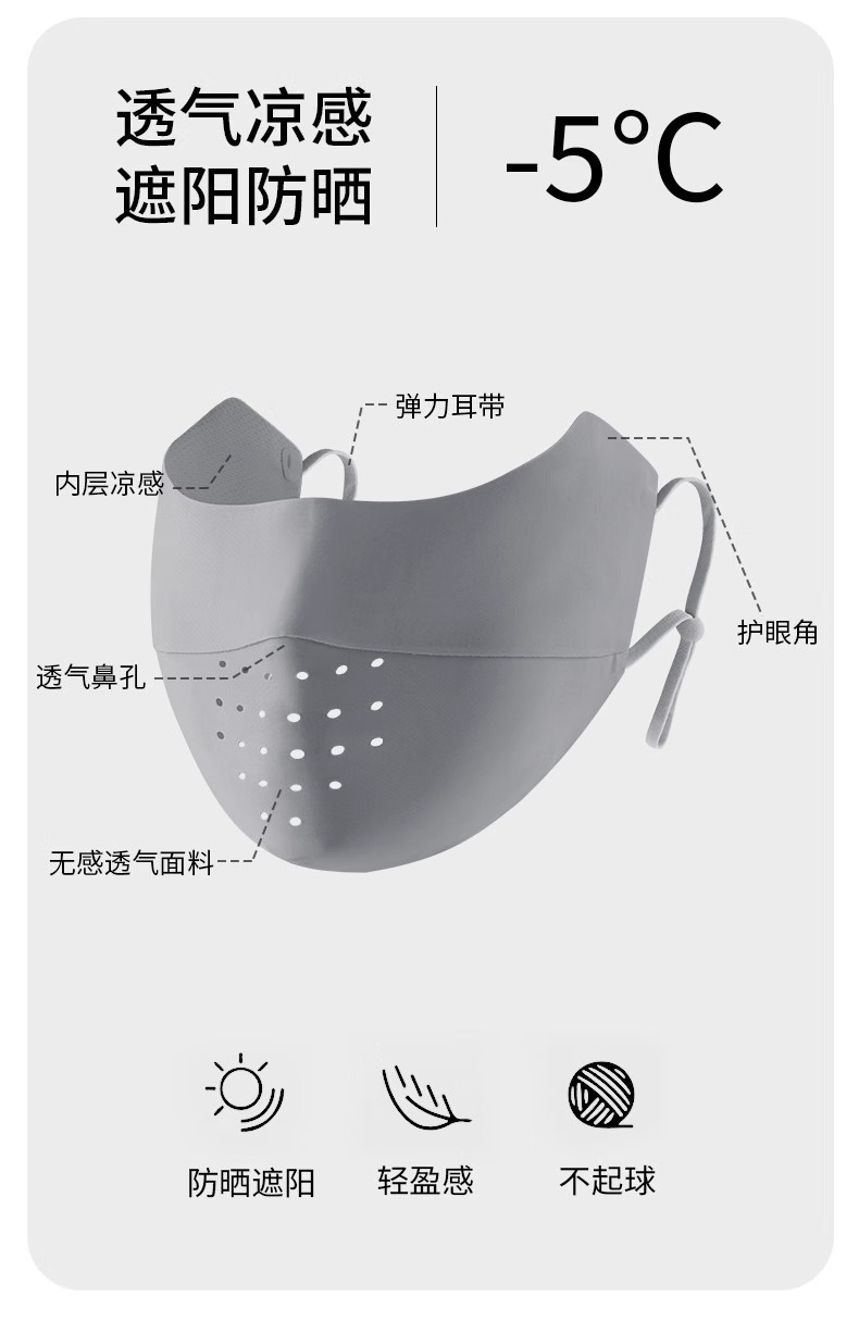 無痕顔ジニ日焼け止めマスク薄手女性紫外線防止通気孔マスク全顔マスク医美日よけ