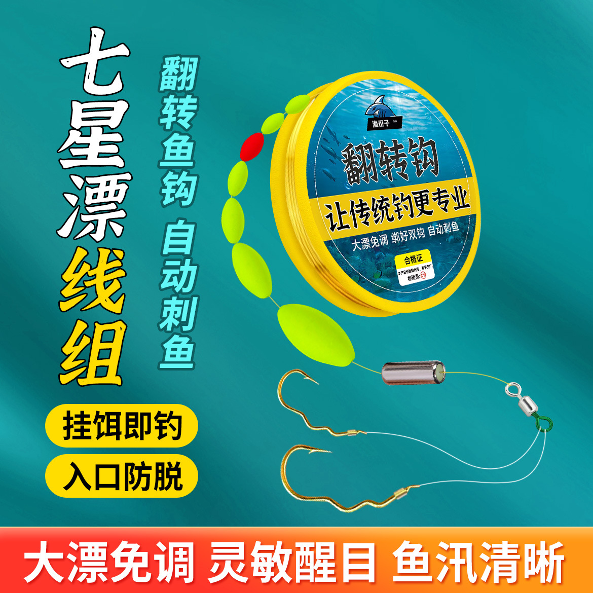 千鲤レ七星漂伝统钓りセット子母环黒ニッケル伊豆フック蛍光豆完成品メインライン输入鱼糸