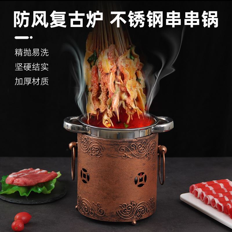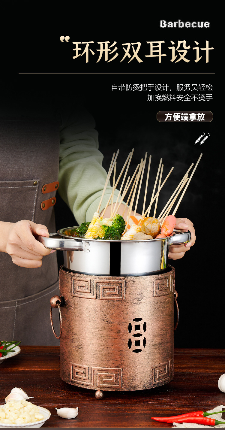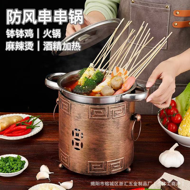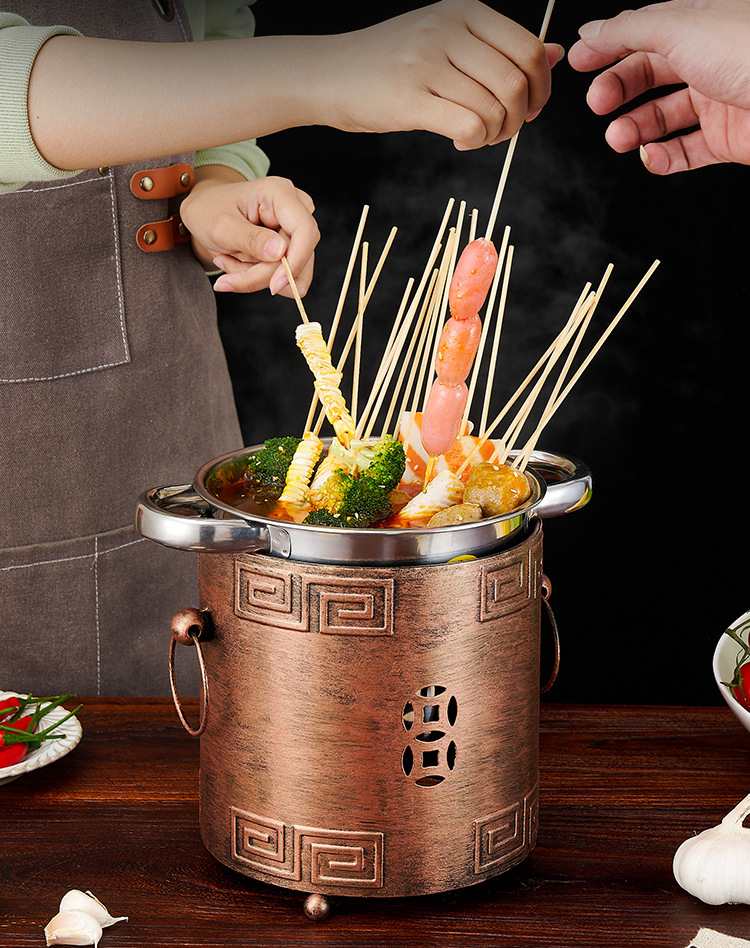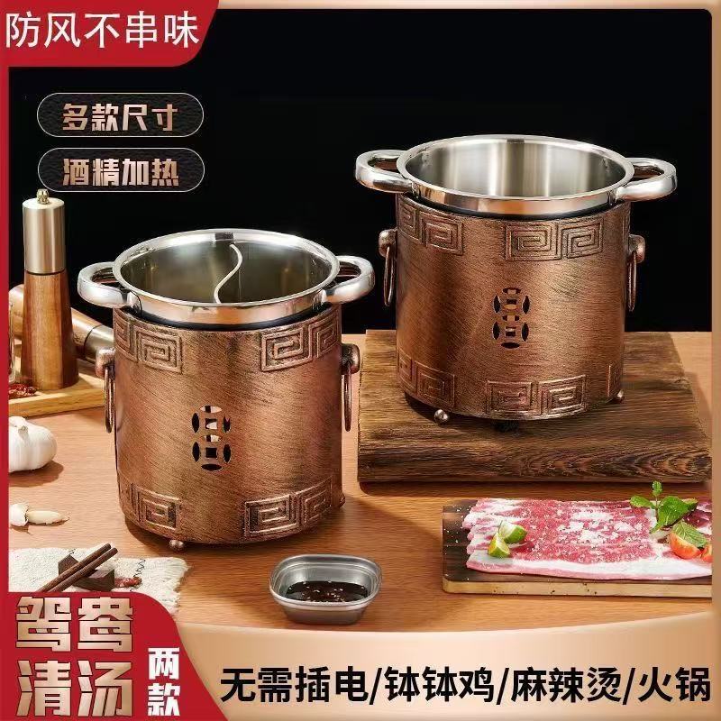 商用加厚单人串串香小火锅一人一锅家用川式户外酒精炉涮毛肚锅