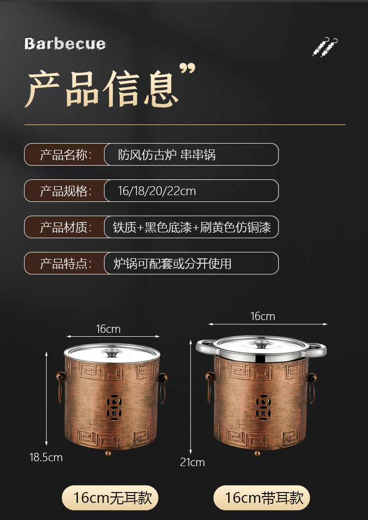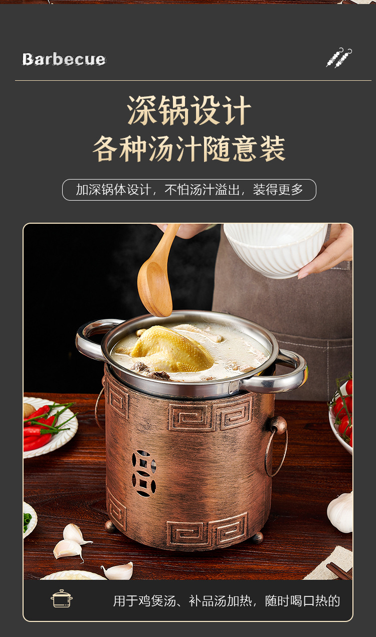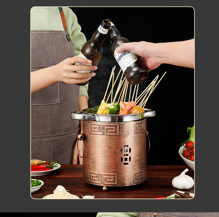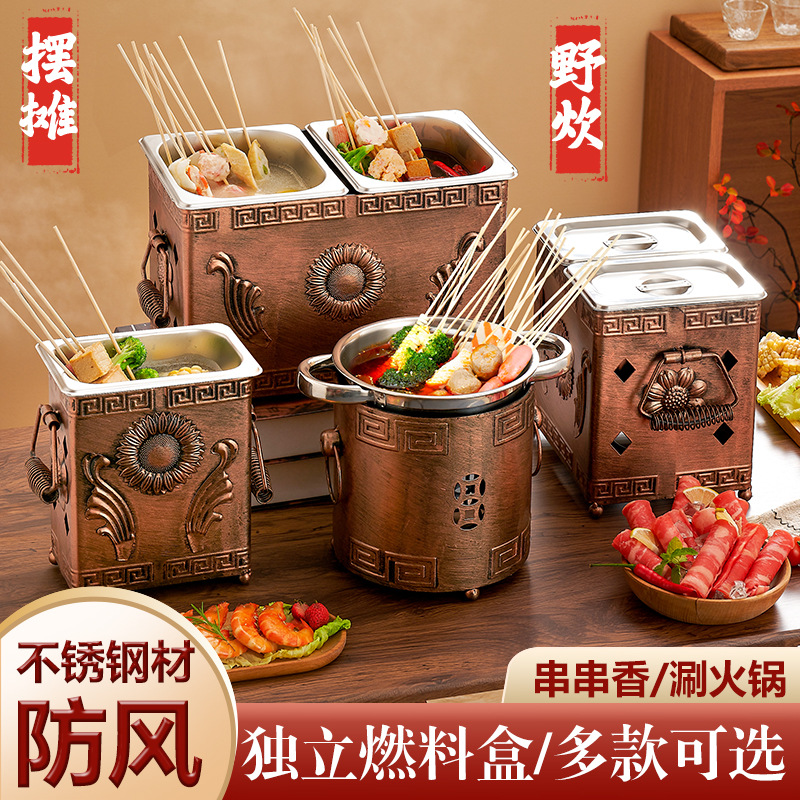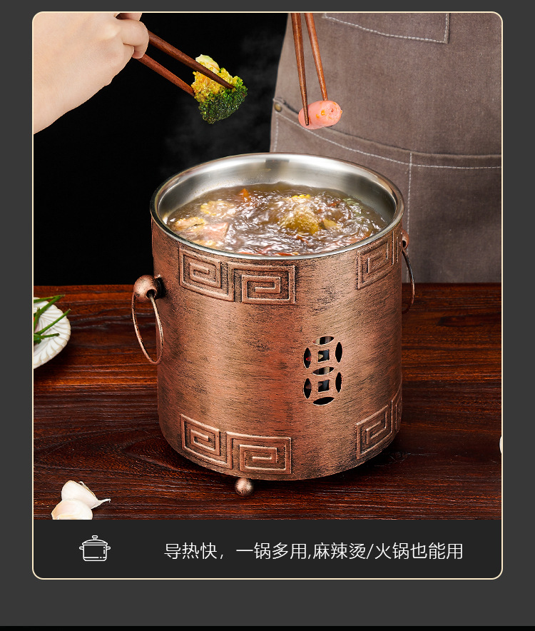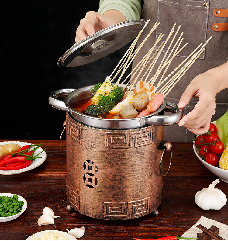 商用加厚单人串串香小火锅一人一锅家用川式户外酒精炉涮毛肚锅