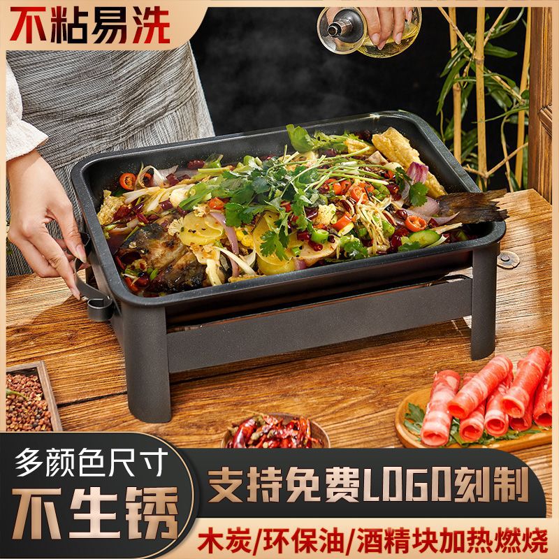 焼き魚ストーブ商用ステンレス焼き魚皿家庭用木炭アルコール環境油加熱長方形海鮮大カレー鍋