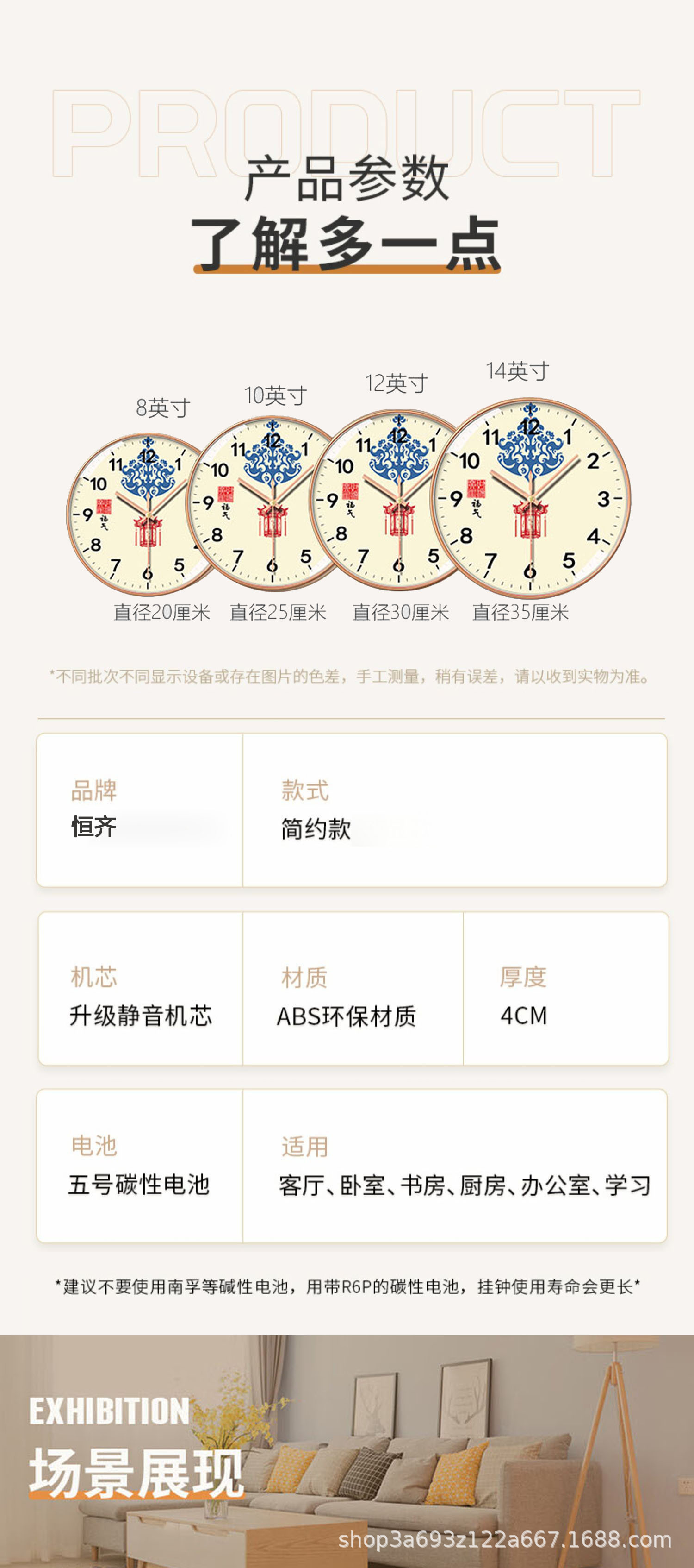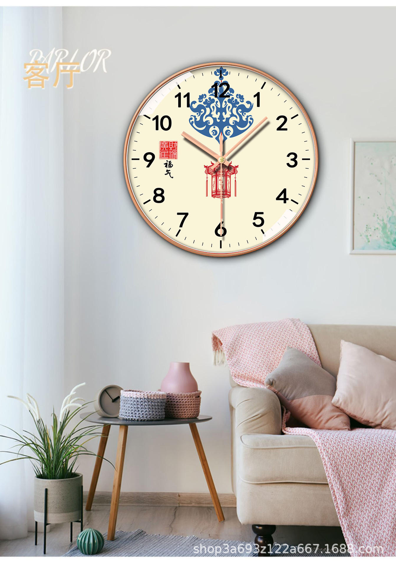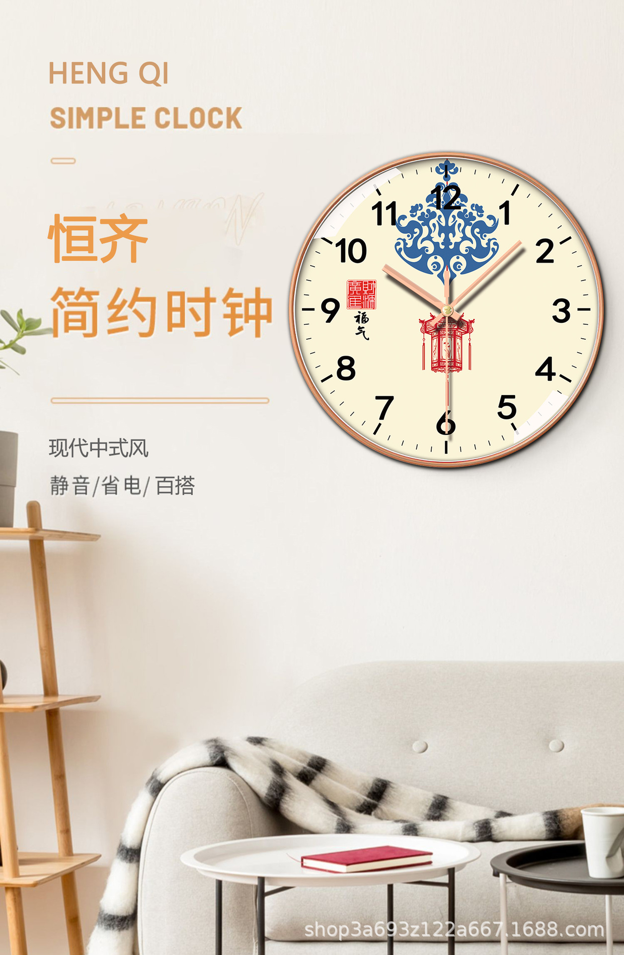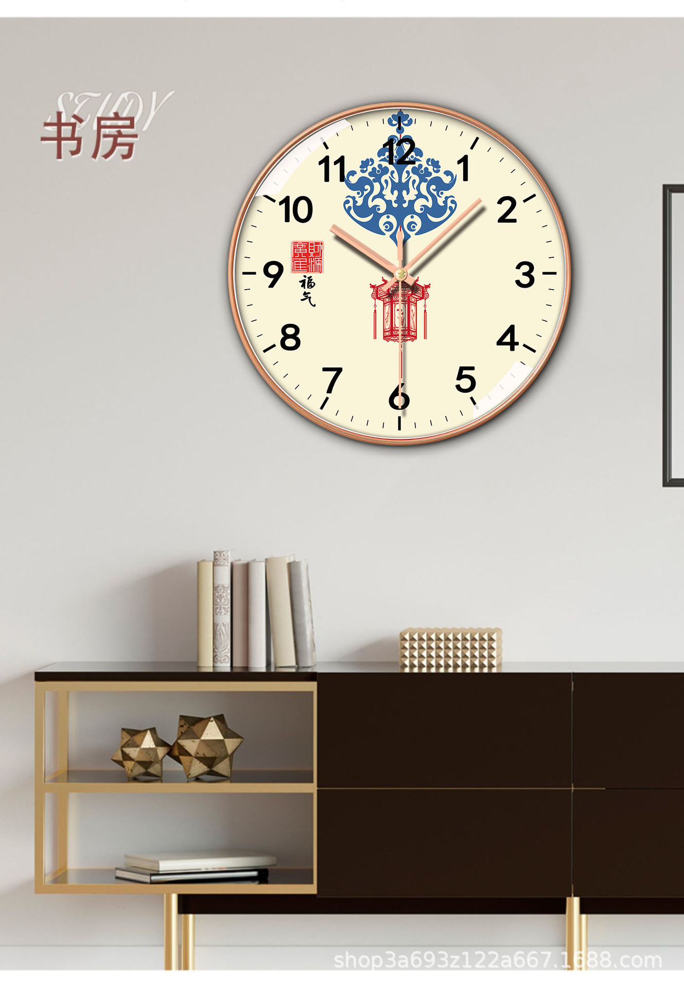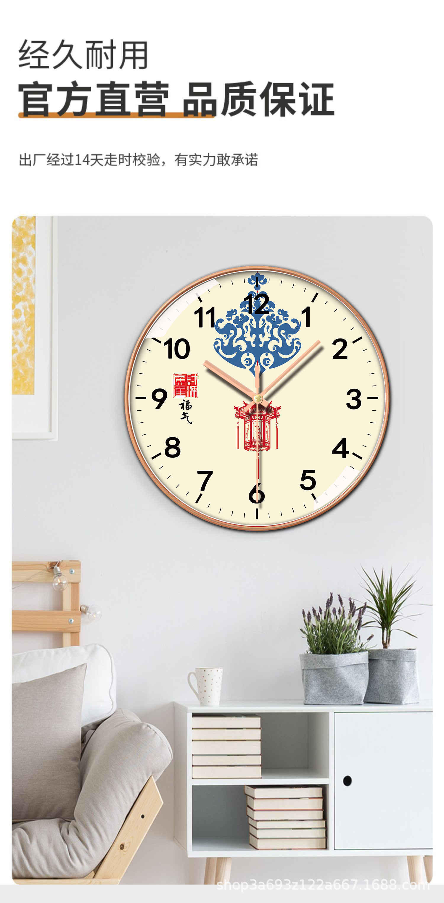 【8インチ20センチ】新中国式財神爷静音時計シンプルな家庭客間掛け時計中国風