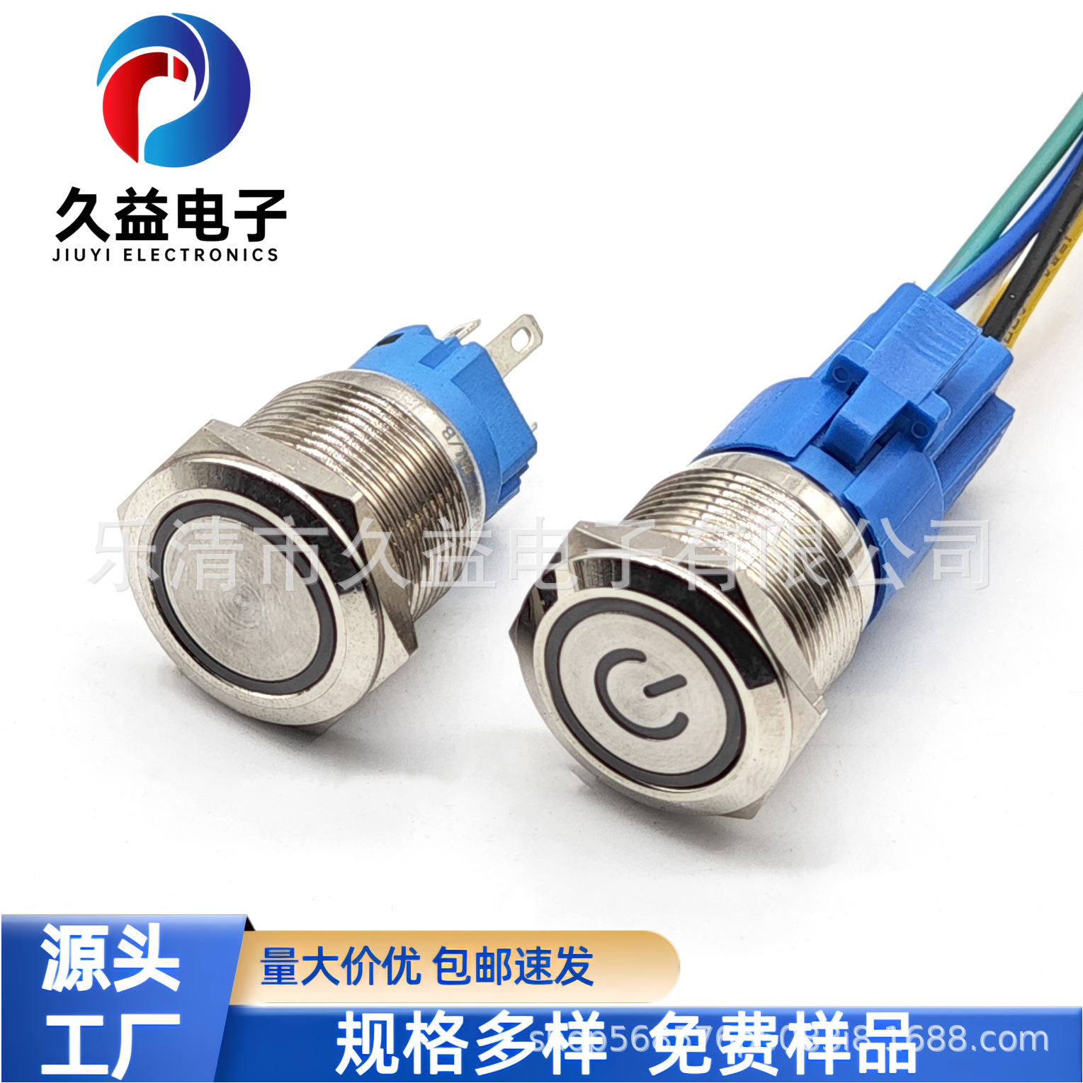 メーカー直供金属ボタンスイッチ19mm LED電源ランプ付セルフロック防水防塵金属ボタン