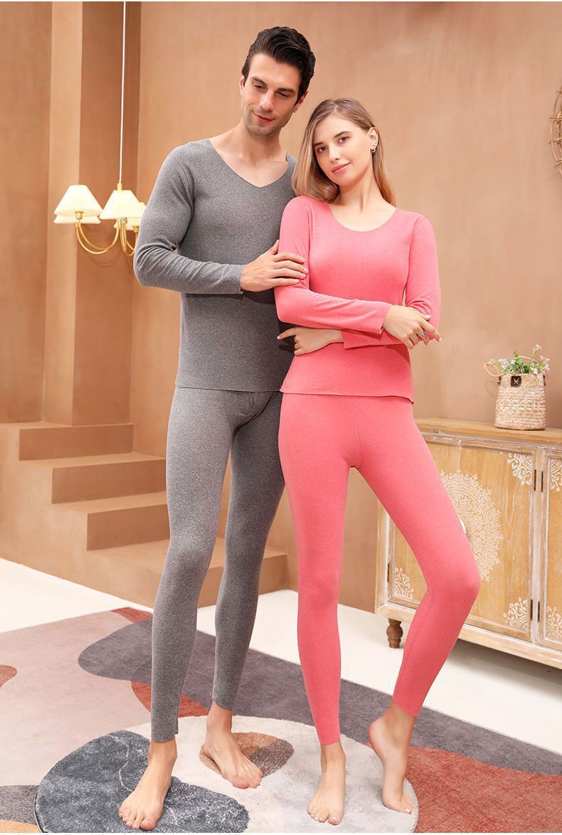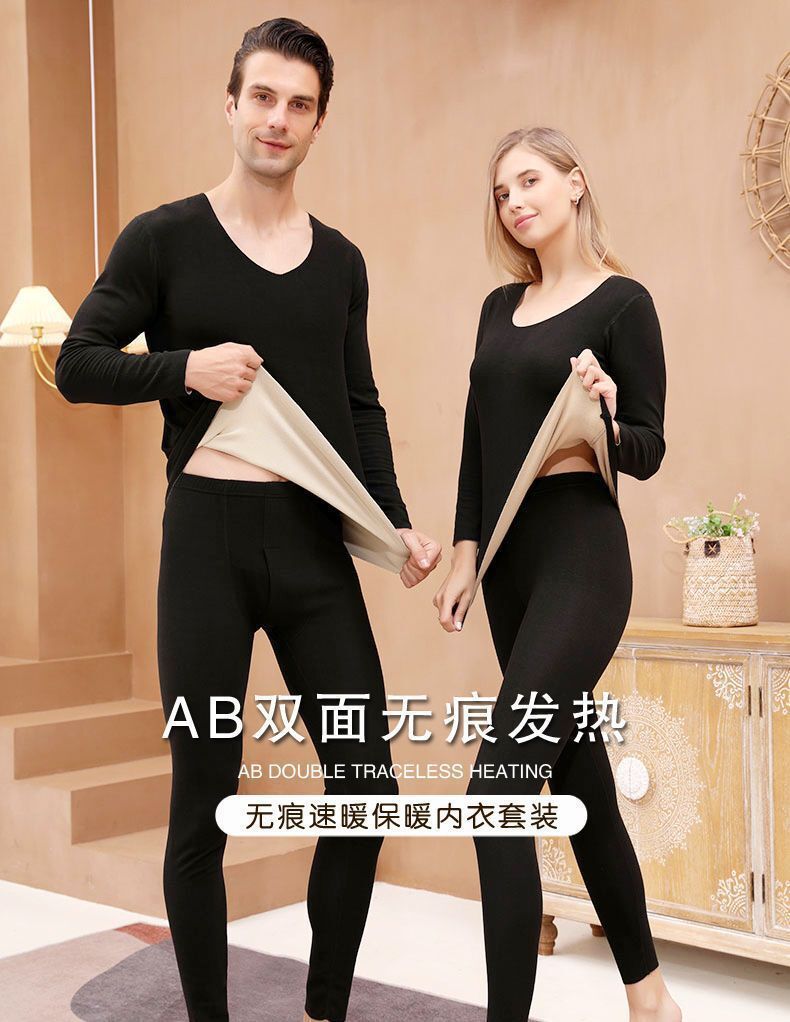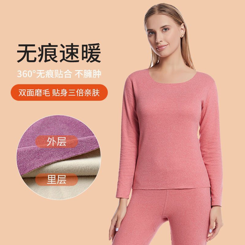 2023新型AB両面パイル無痕保温下着セット女性恒温秋衣秋ズボン冬シャツ