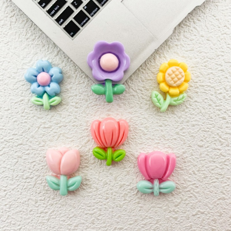 明るい顔のチューリップのひまわりの花の樹脂の部品のdiy携帯の携帯電話の携帯電話のクリップの頭の縄の冷蔵庫は靴のバックルの材料を貼ります。
