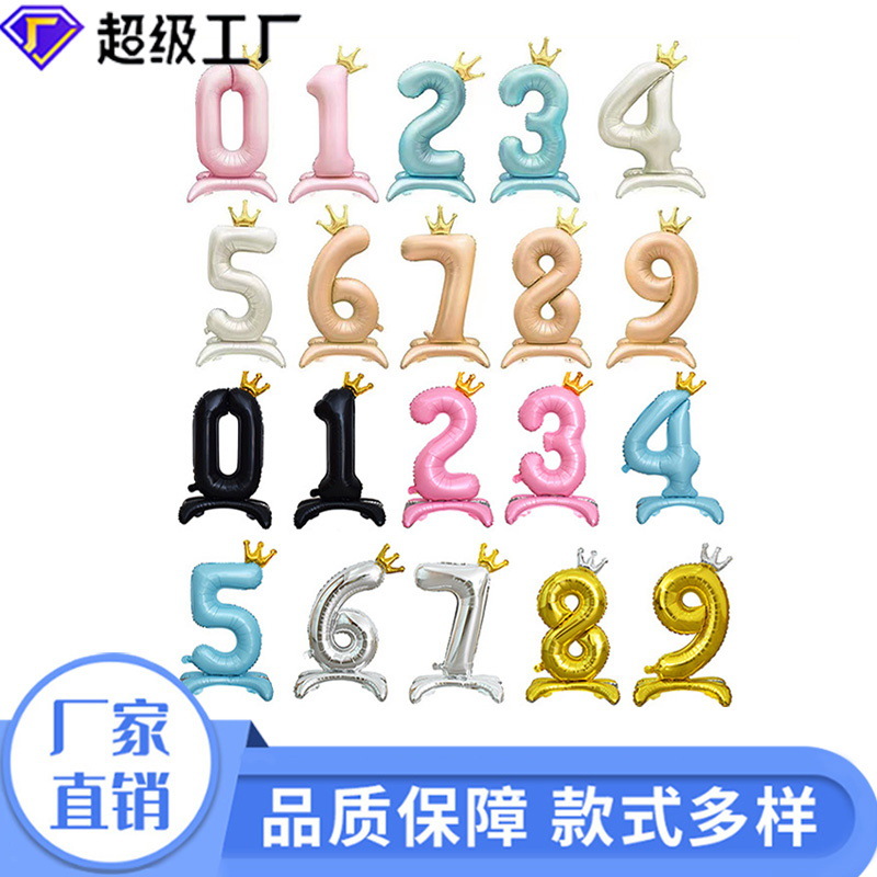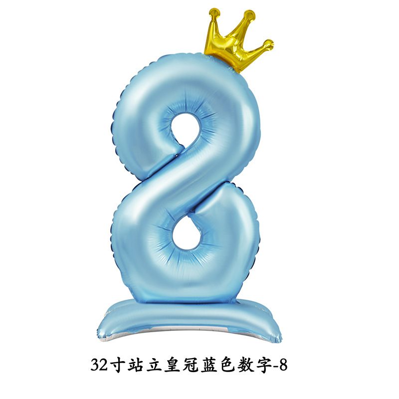 新品32インチスタンドベースクラウンデジタルシェイプアルミフィルムバルーン诞生日パーティー祝日装饰アレンジバルーン