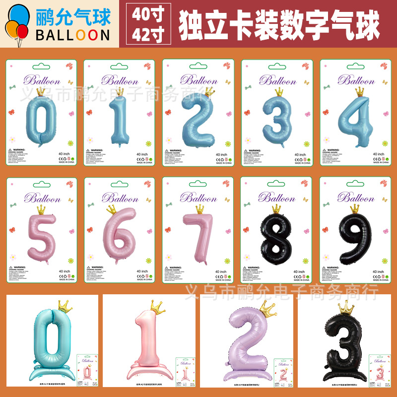 外贸跨境40寸42寸皇冠数字气球卡纸独立包装节日庆典生日装饰气球
