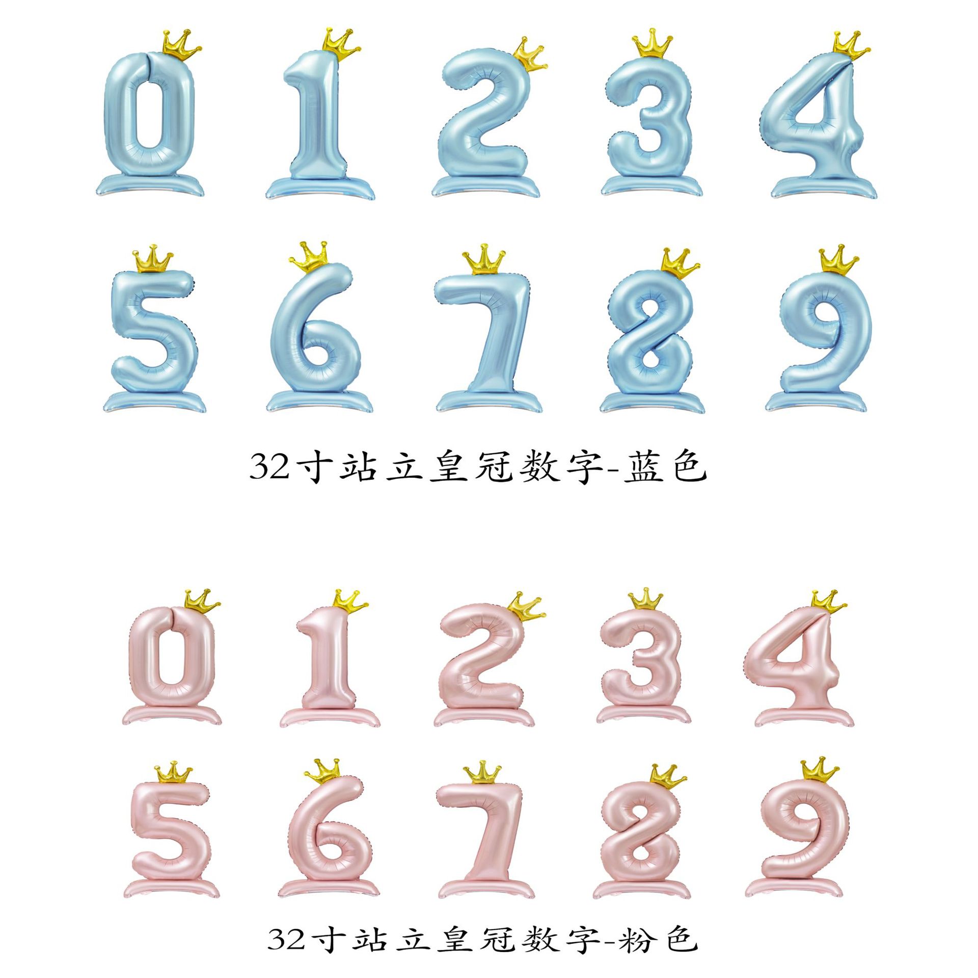 32インチ立ちクラウンデジタルアルミニウム膜バルーンブルーピンク立ちデジタルバルーン诞生日パーティー装饰アレンジ