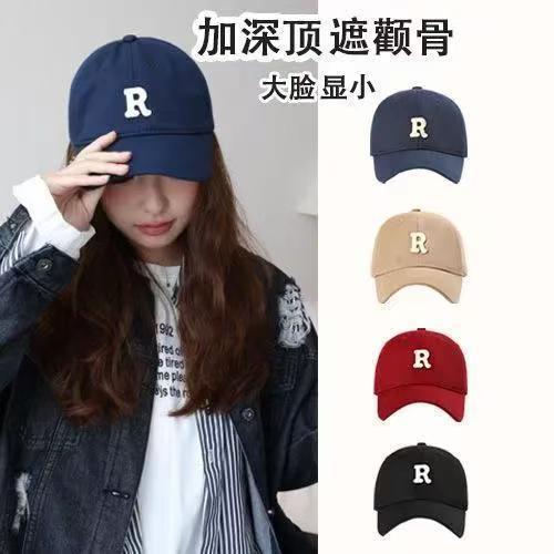 R标咖啡色棒球帽女大头围新款显脸小百搭运动帽子男ins鸭舌帽潮帽