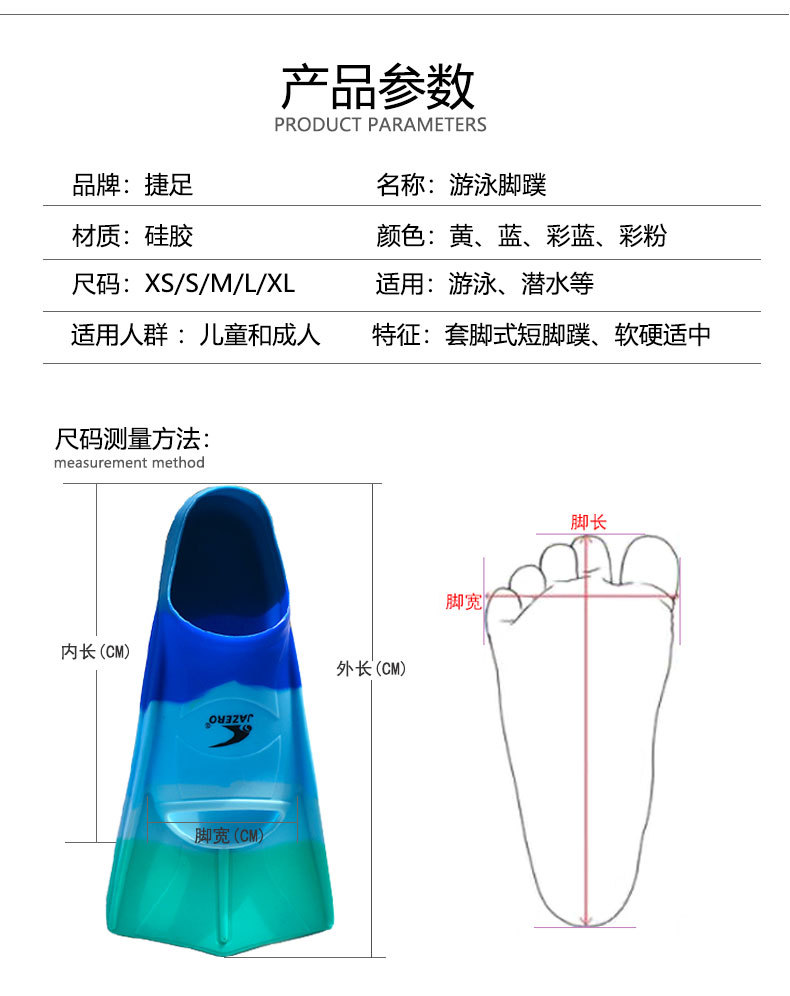 成人潜水短轻便硅胶自由泳脚蹼儿童蛙泳游泳脚蹼跨境热卖厂家直供