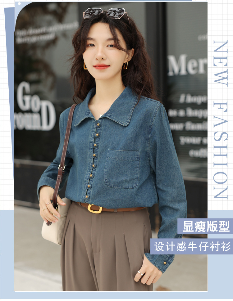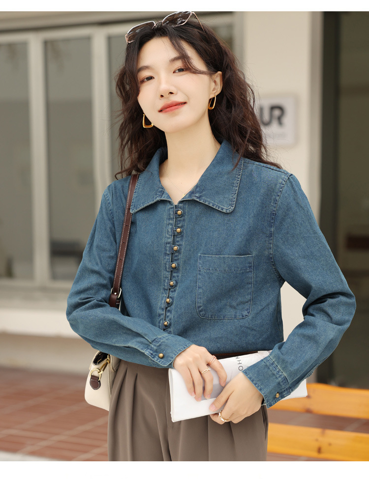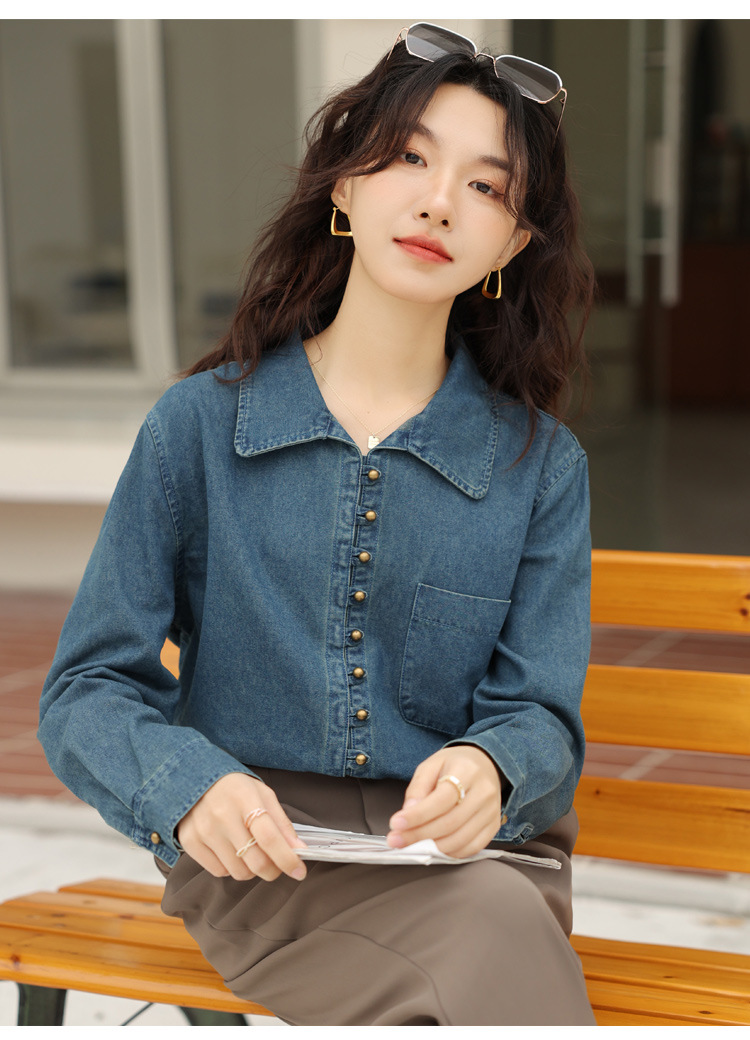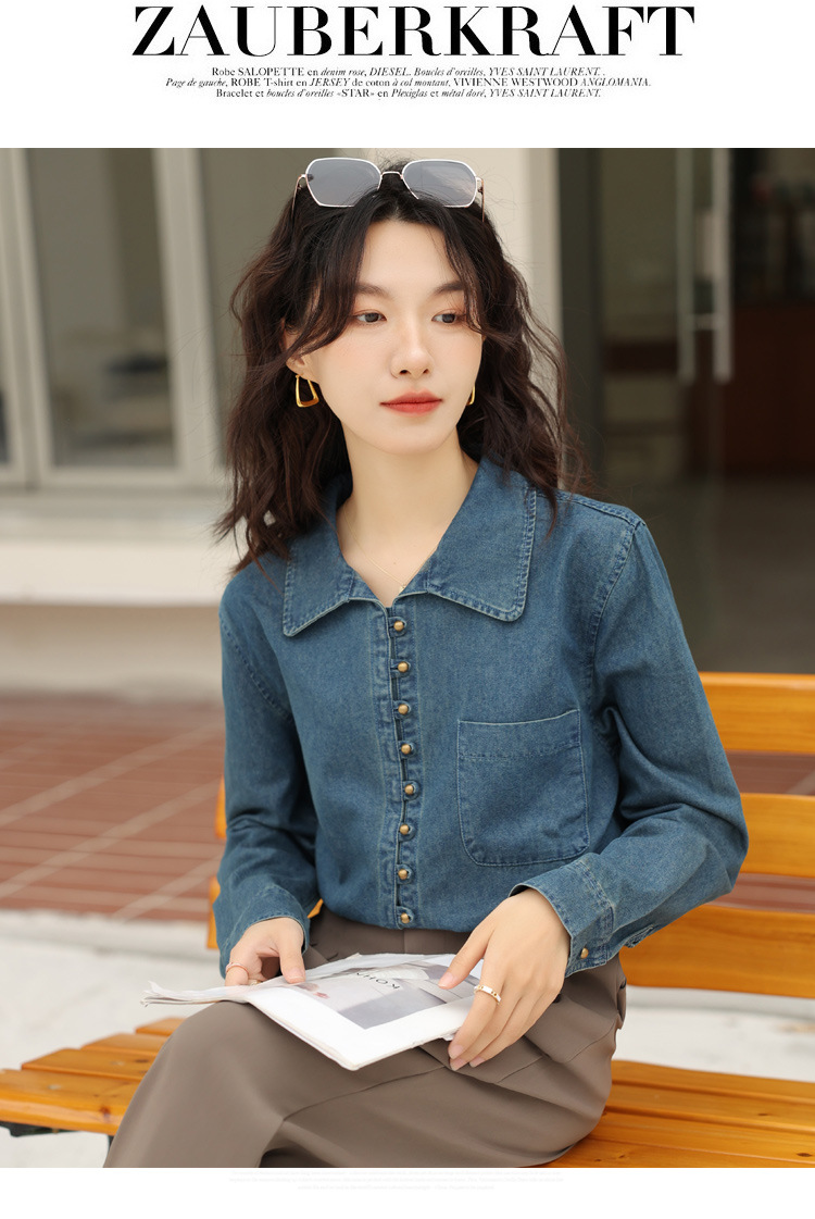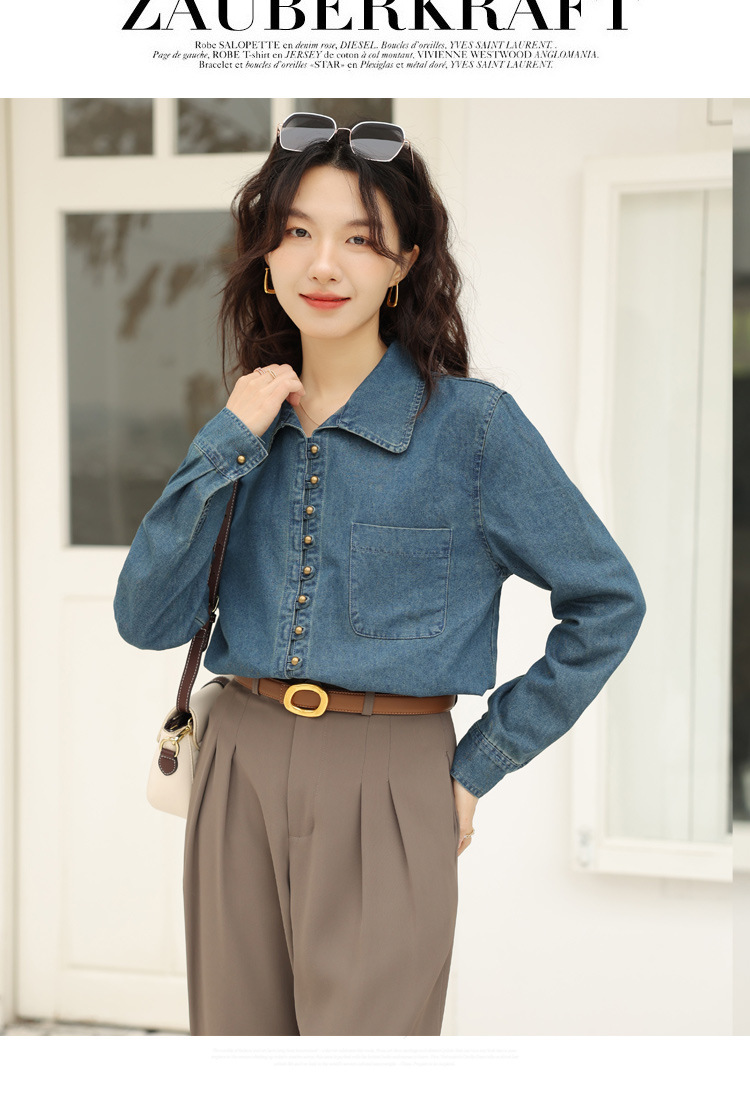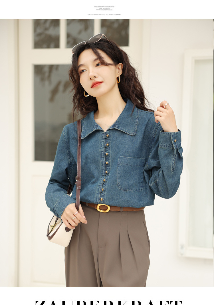 フレンチデニムのシャツの女性デザイン感があります。