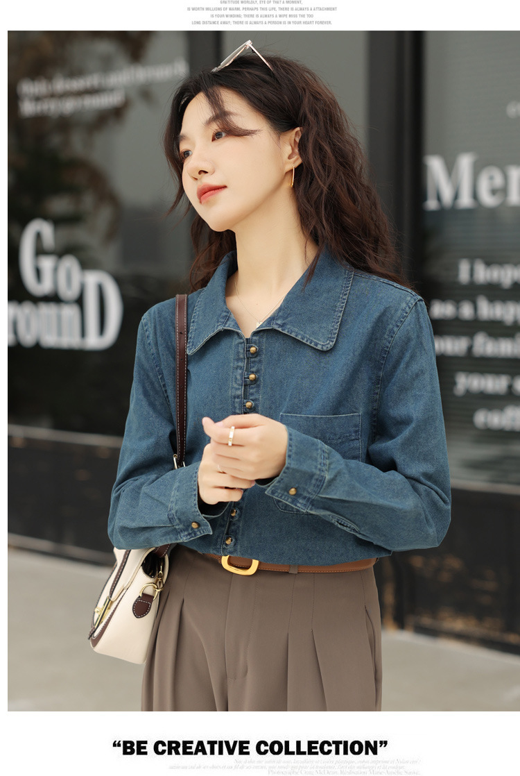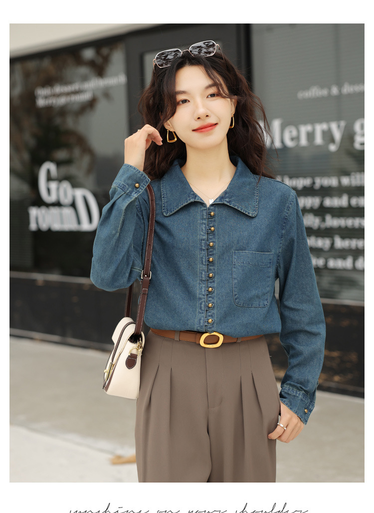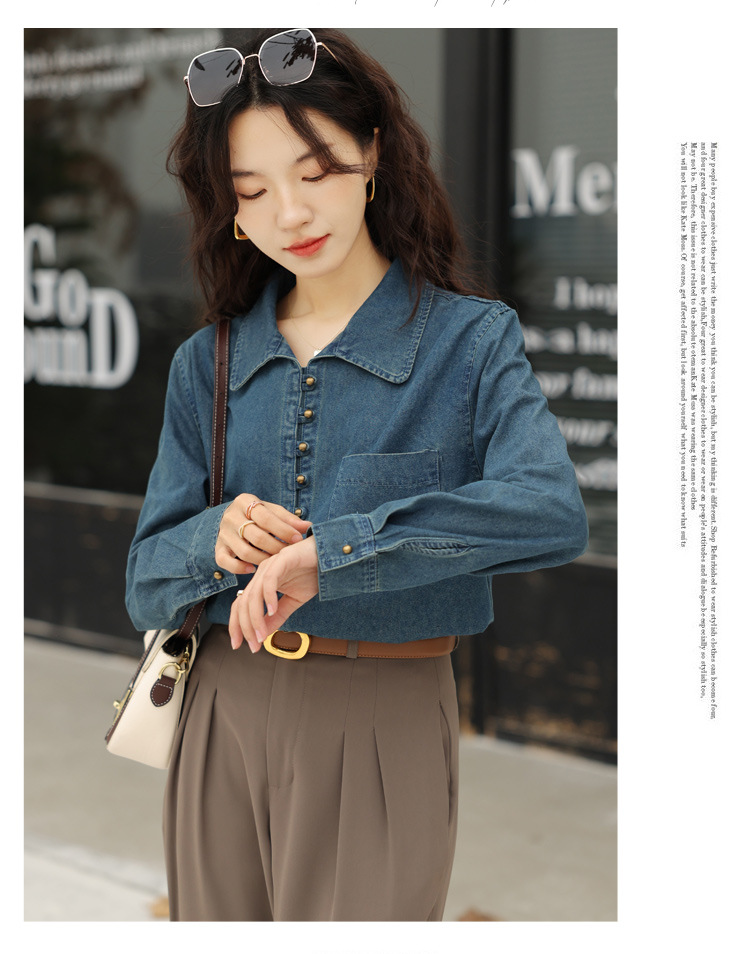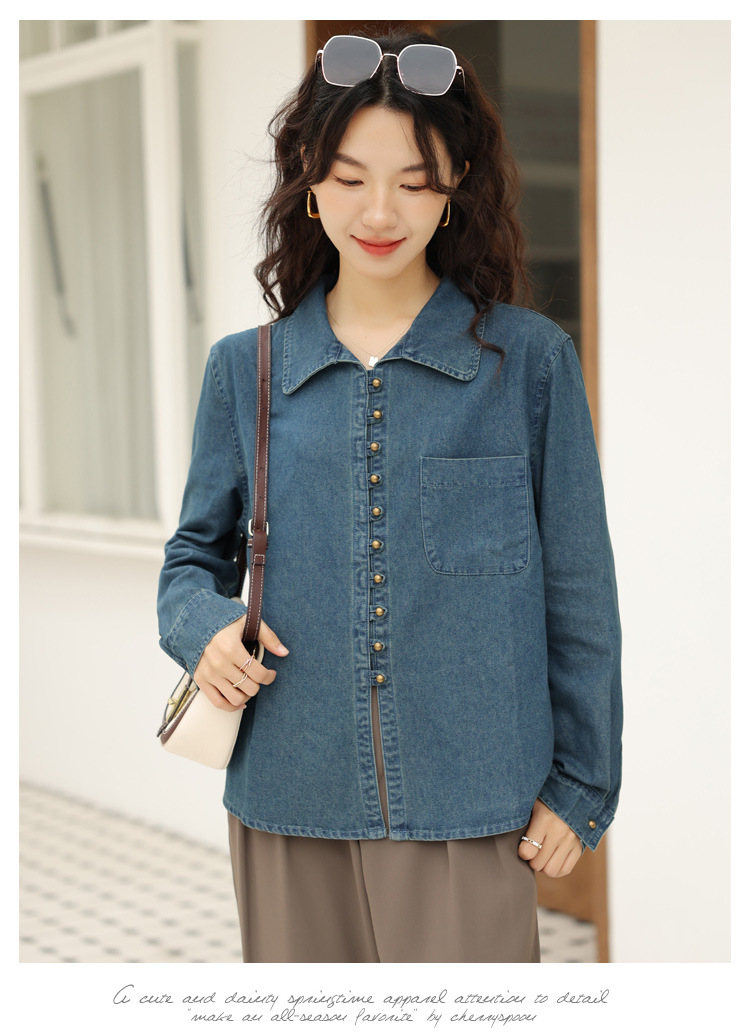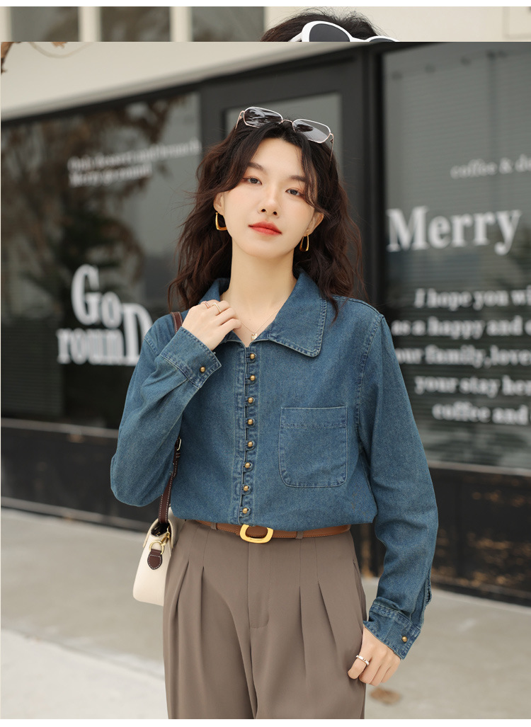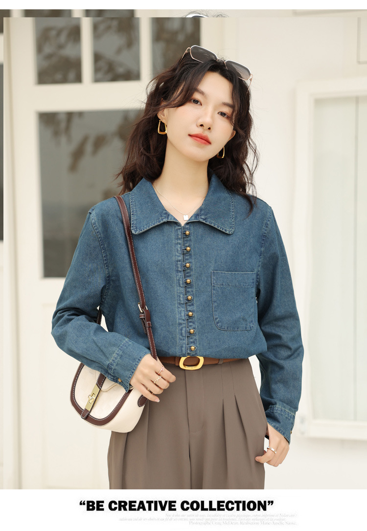 フレンチデニムのシャツの女性デザイン感があります。