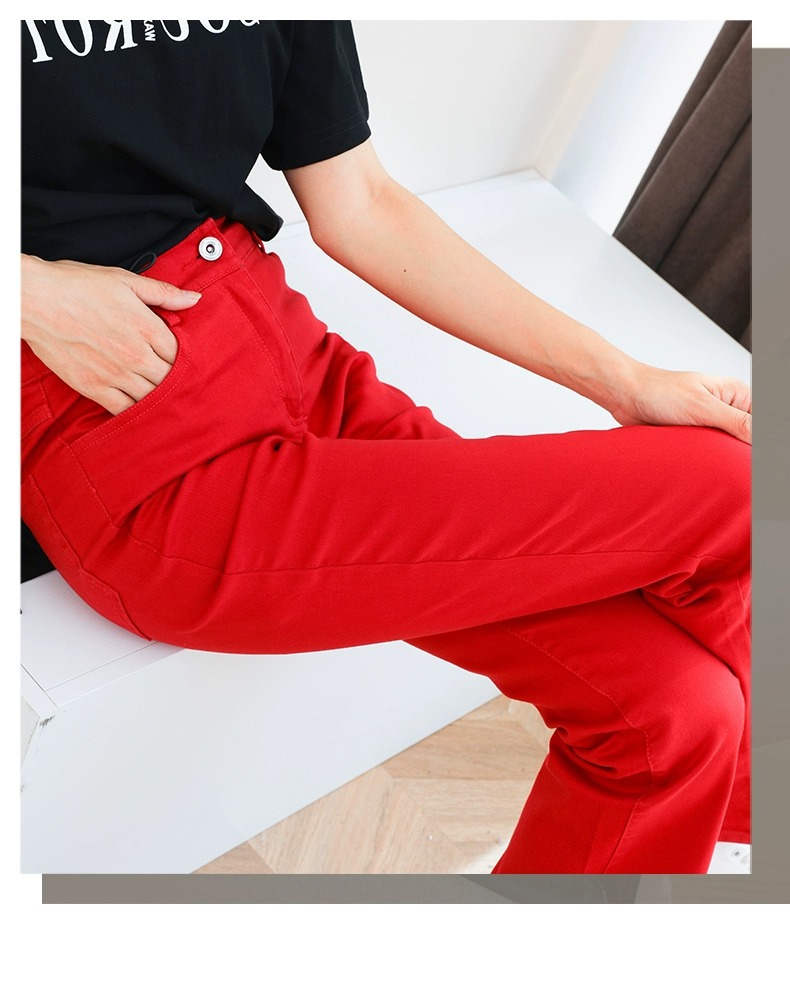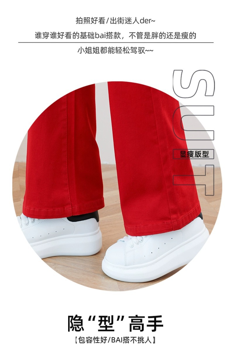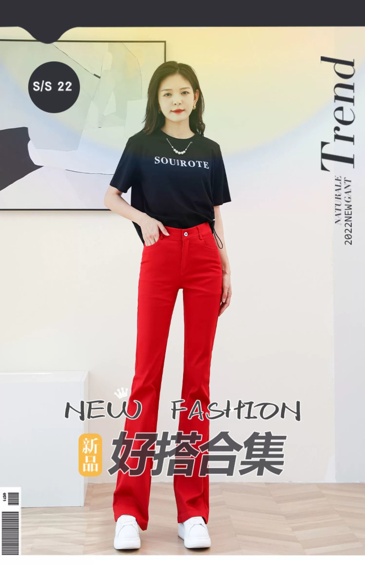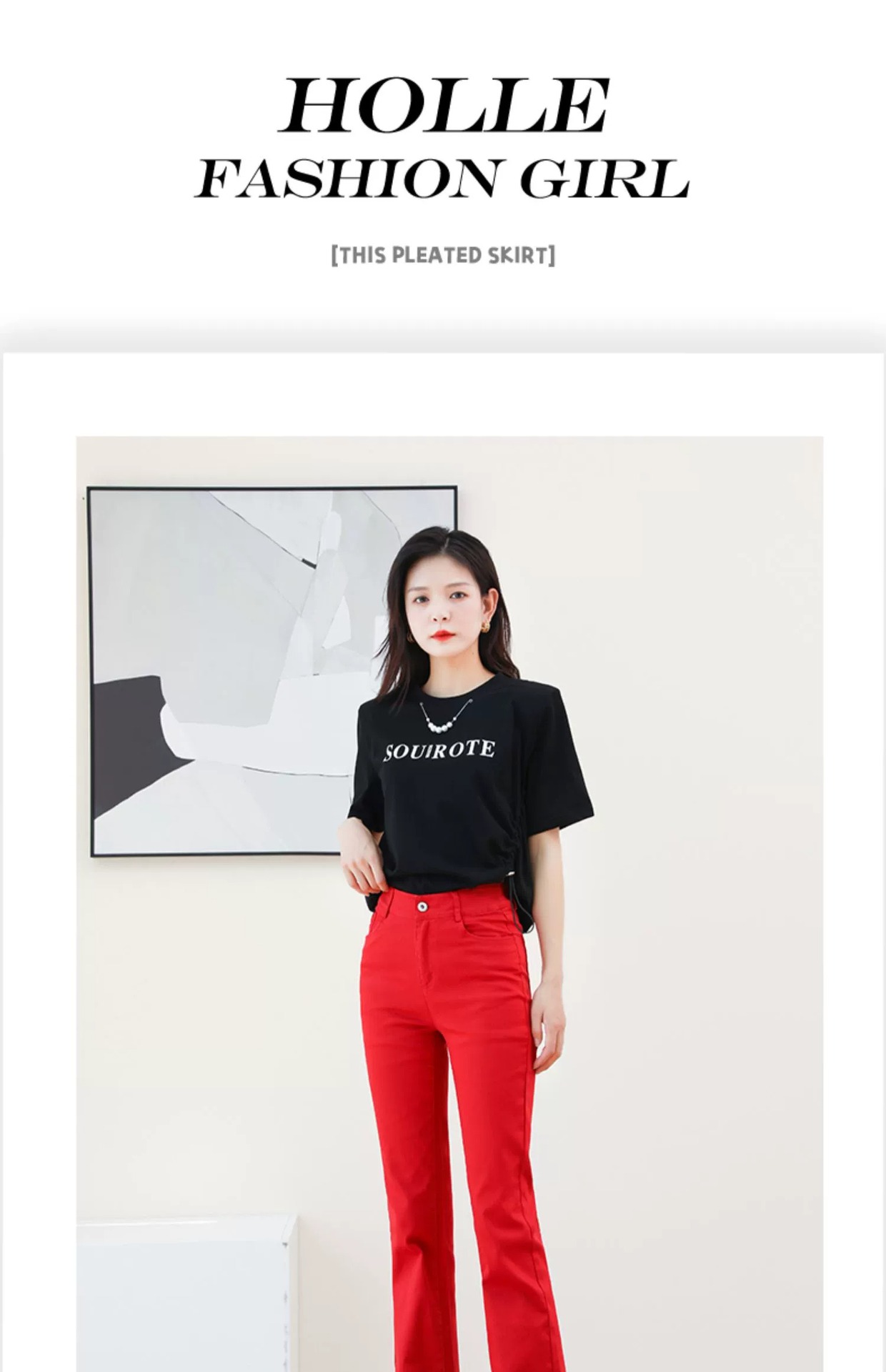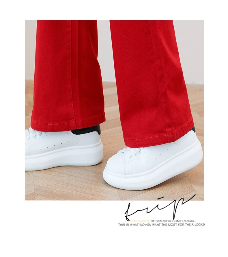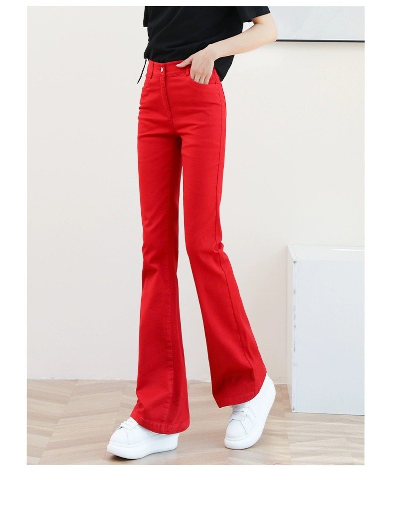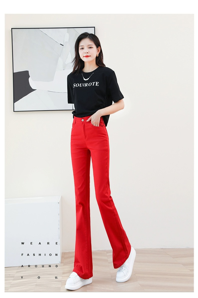 真っ赤なデニムのマイクロフレアパンツ、女性用、2025年夏、薄手、馬蹄型、ハイウエスト、スリムフィット、小柄な方向けのパンツ