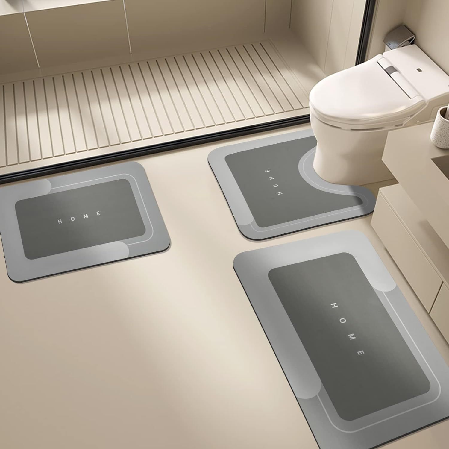 クロスボーダーJIT代理店 シンプルレタープリント 浴室珪藻土 フロアマット 吸水速乾 3点セット 滑り止めフットマット