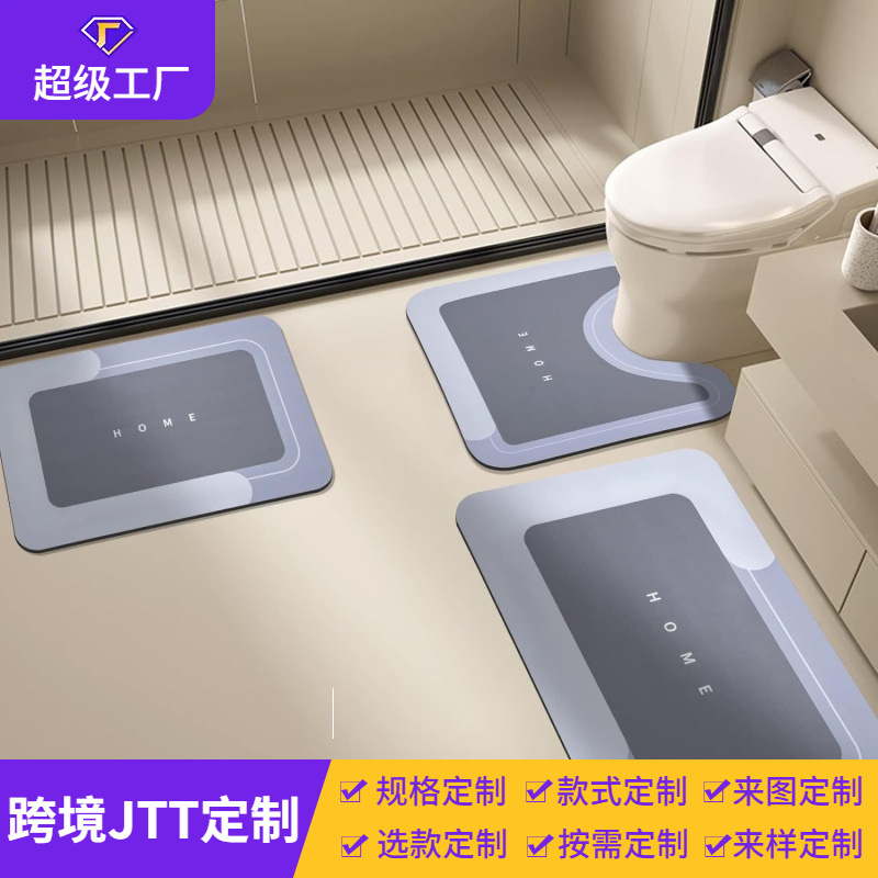 跨境temu简约硅藻泥卫生间耐脏U型马桶垫浴室吸水防滑速干蹭脚垫