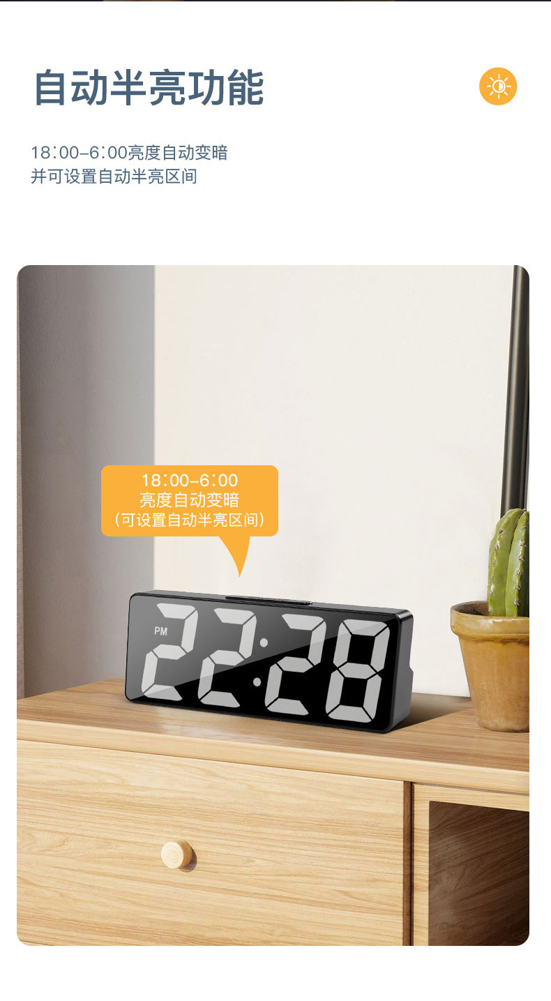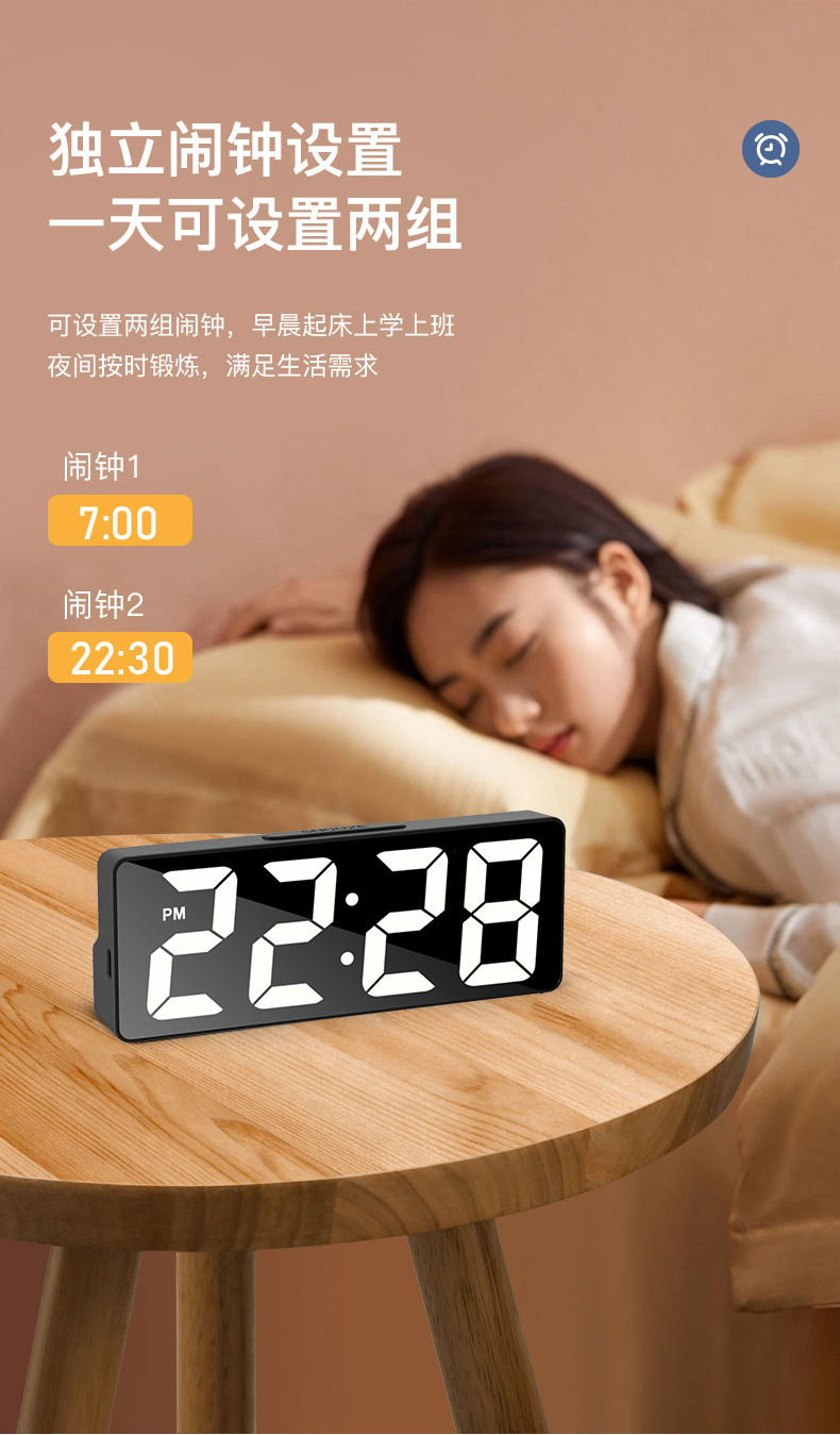 智能闹钟计时器大屏幕高清数字夜光起床神器智能光感天气电子闹钟
