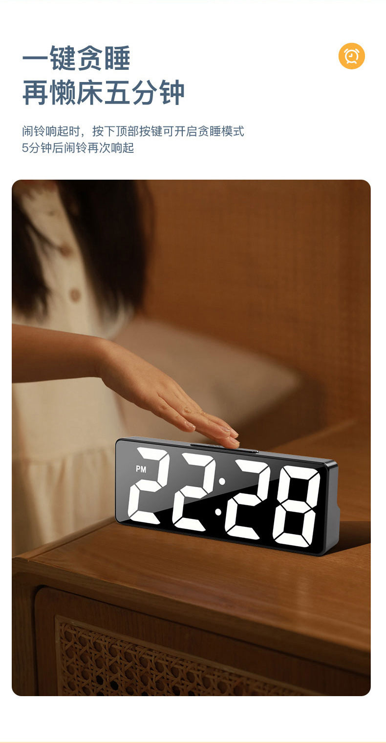 闹钟镜面数字时钟led夜光静音桌面床头ins摆件学生智能电子钟表