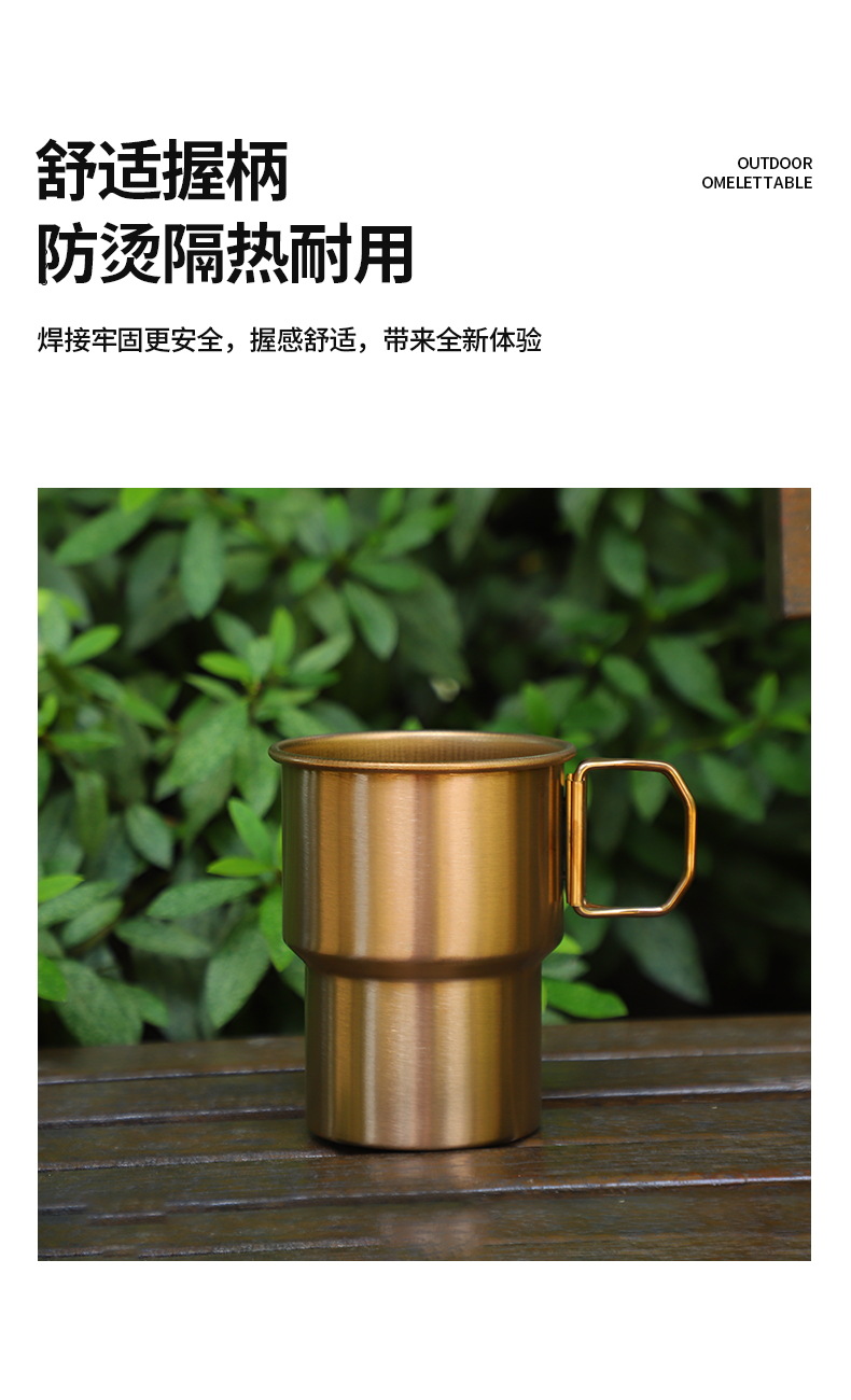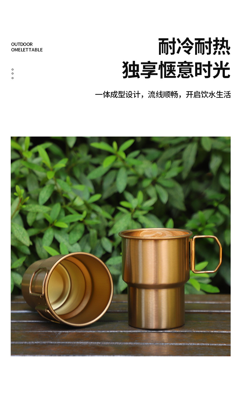 304不锈钢咖啡杯高颜值户外餐具台阶型带把手折叠杯餐厅饮料水杯