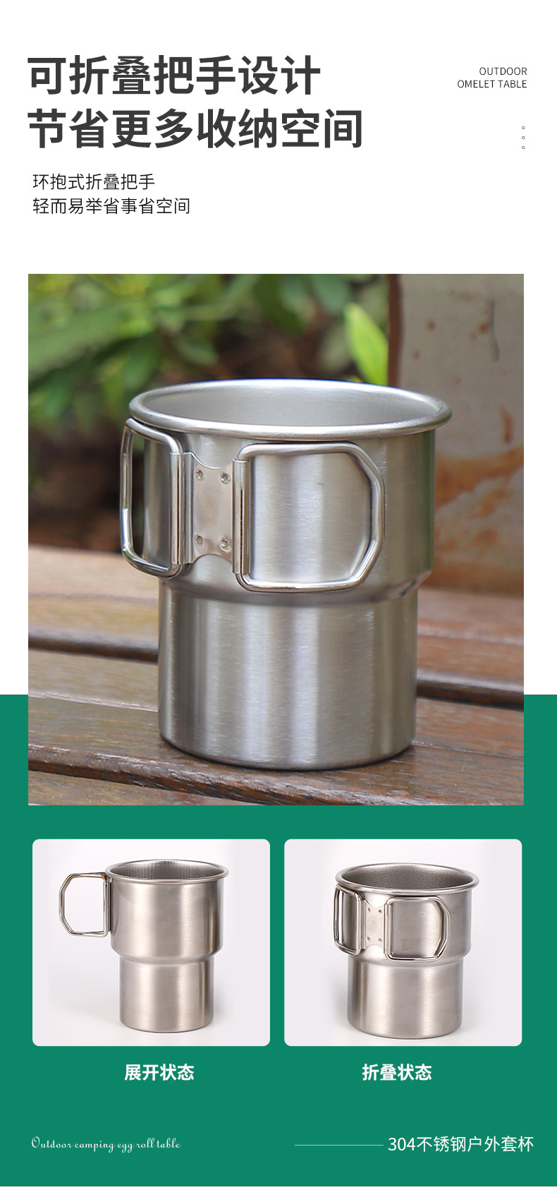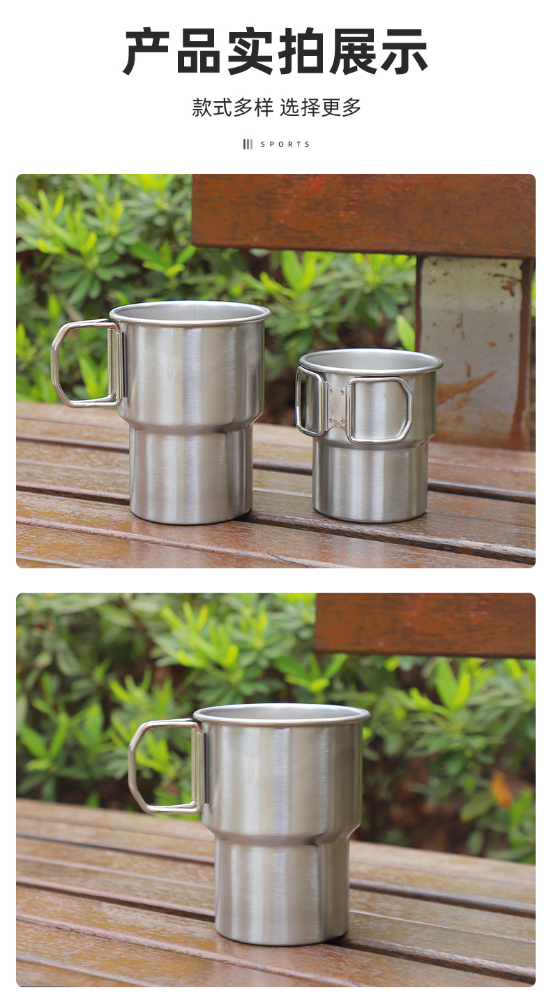 304ステンレス屋外コーヒーカップキャンプ携帯台階段カップ折り畳みハンドルキャンプカップうがいビールグラス