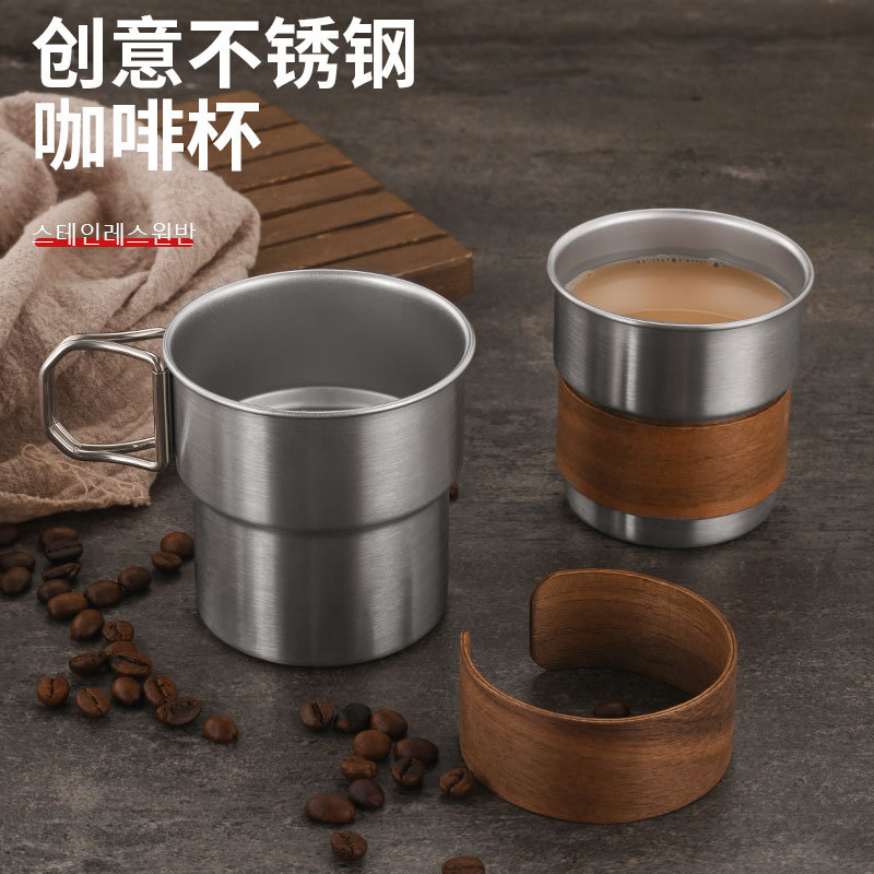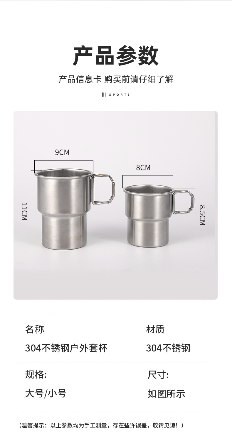 304ステンレスコーヒーカップ屋外キャンプポータブルビールカップ高颜値カップセットパーマ防止ステップカップ