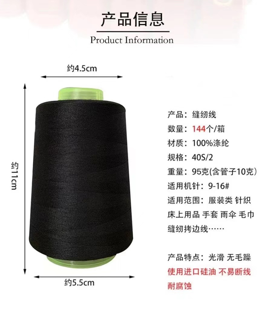 白402ミシン糸大巻宝塔ミシン糸メーカー卸売り可能家庭用手縫いポリエステル黒糸