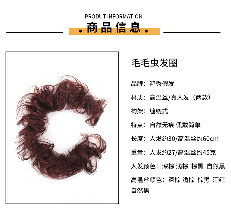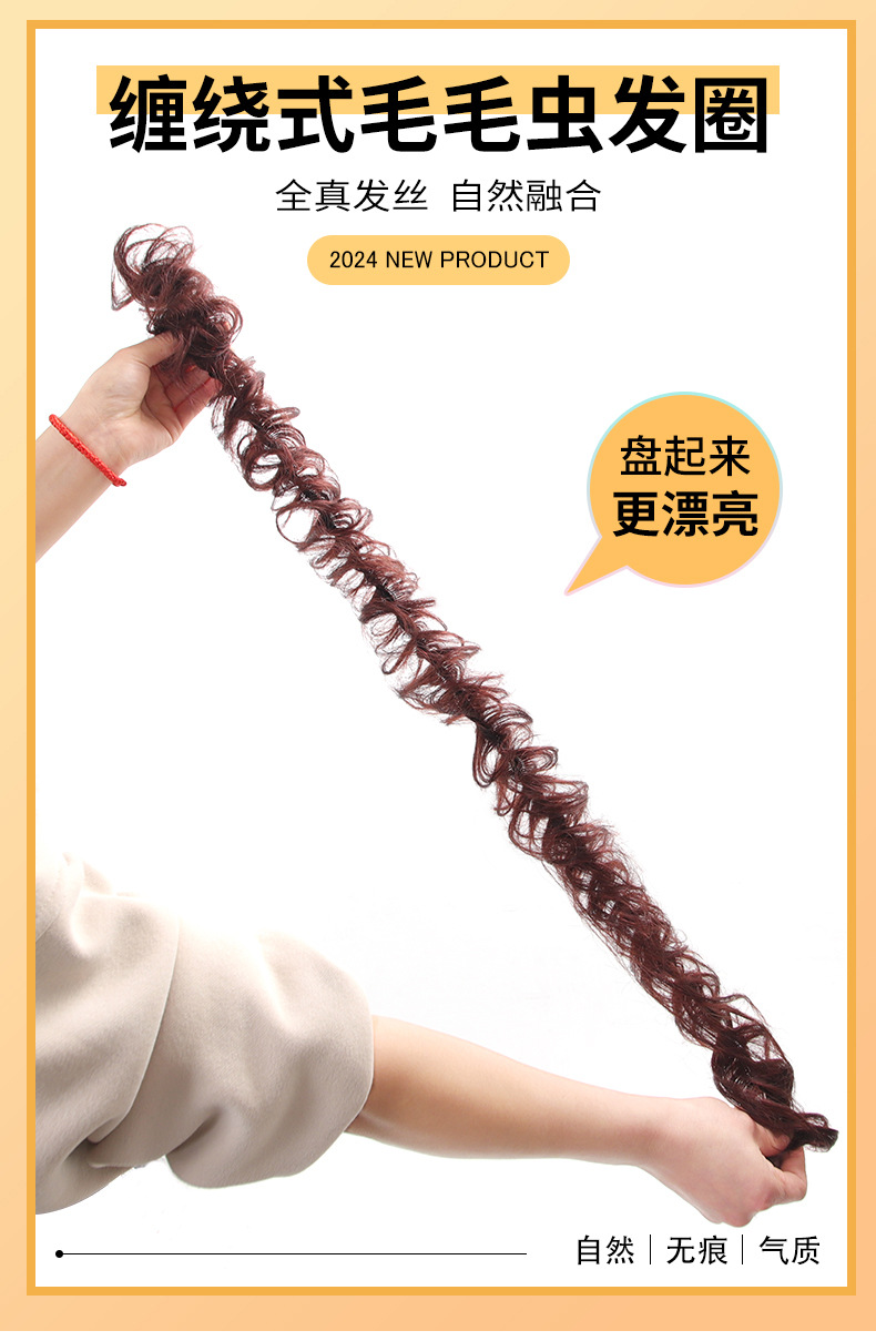 本物の毛虫のつや消しの高温糸のシミュレーションの髪のかつらの巻き方式の皿の髪の巻き方のつぼみ式の団子の髪の巻き方の輪