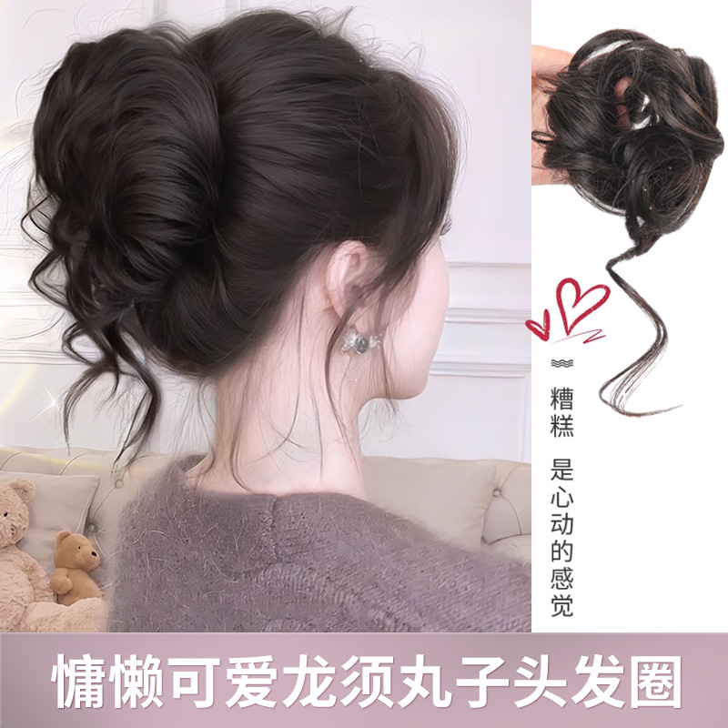 かわいい皮のふわふわした怠惰な竜ひげの団子の髪の包みは髪の量を増加して一秒成型して神器の皮の筋の金を出します。