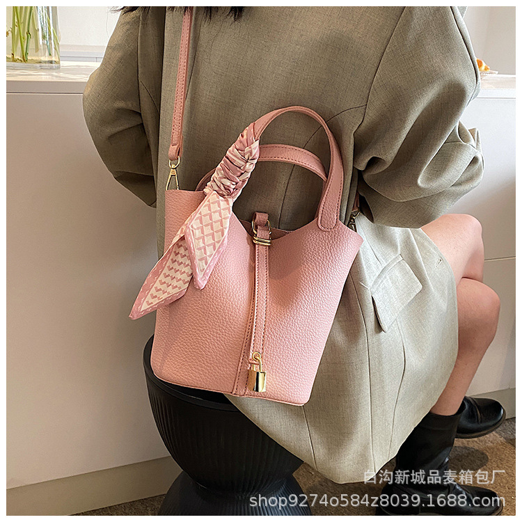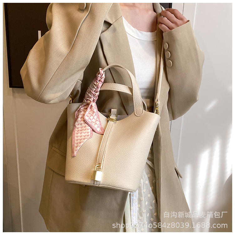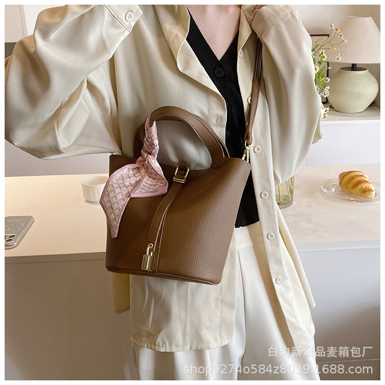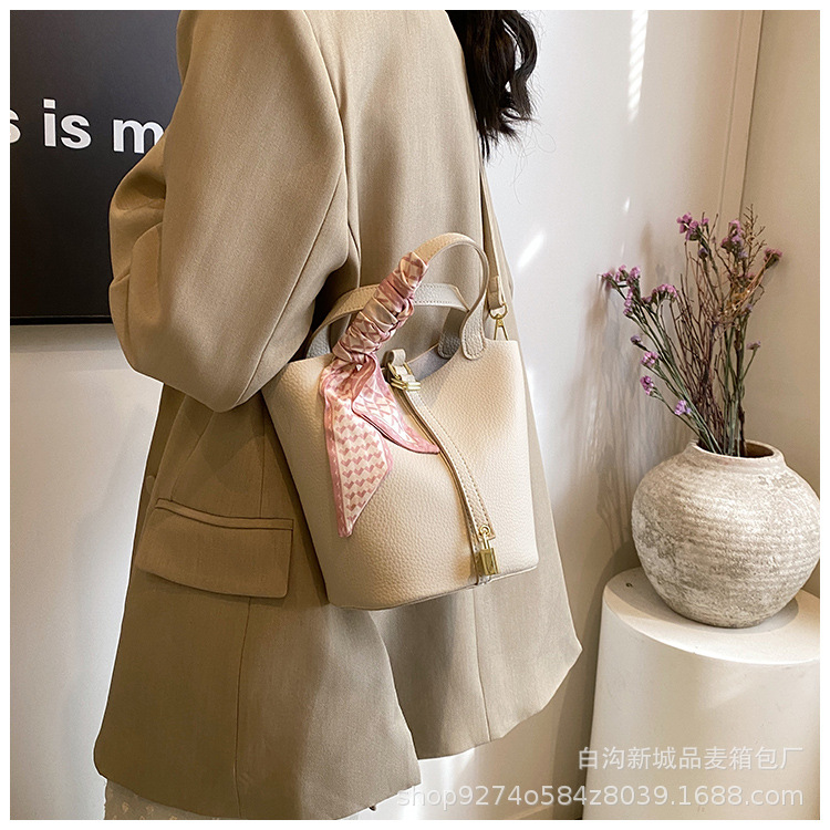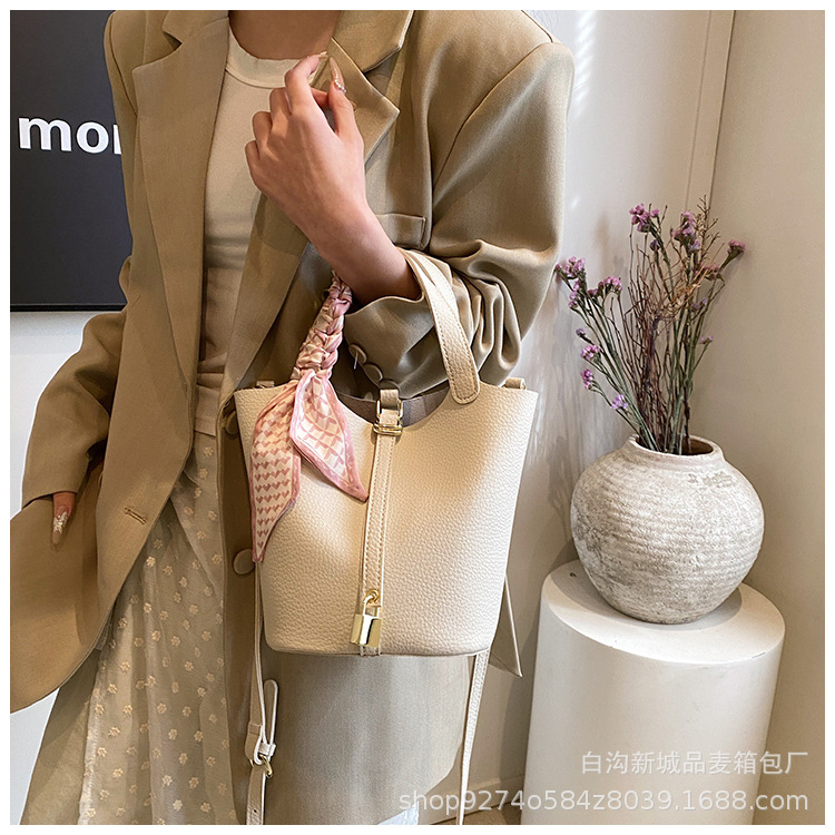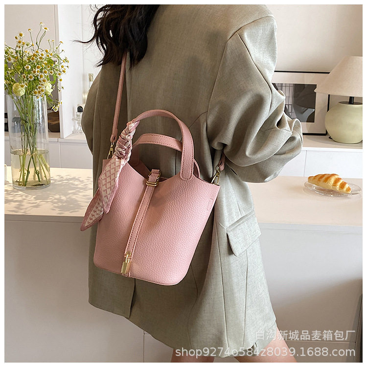 クロスボーダーファッションハンドバッグ、無地、2025年新作、フレンチスタイル、シンプルで爽やかなシングルショルダー/クロスボディバッグ、流行のバケットバッグ