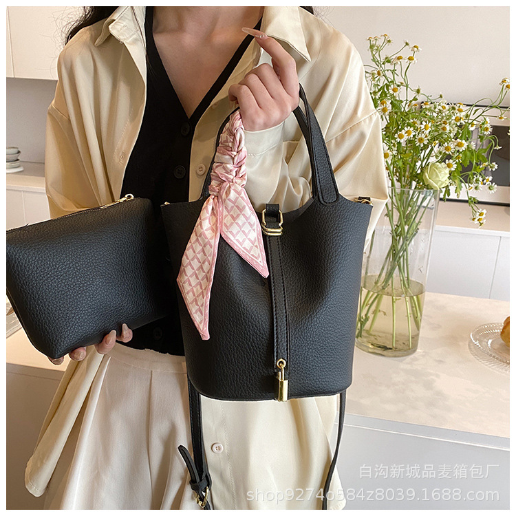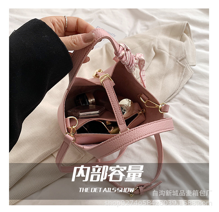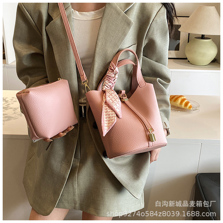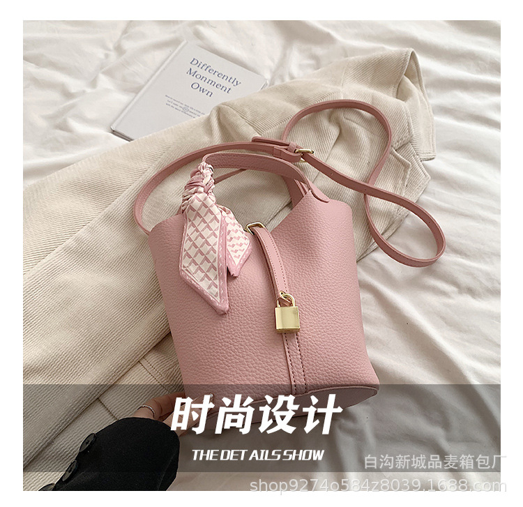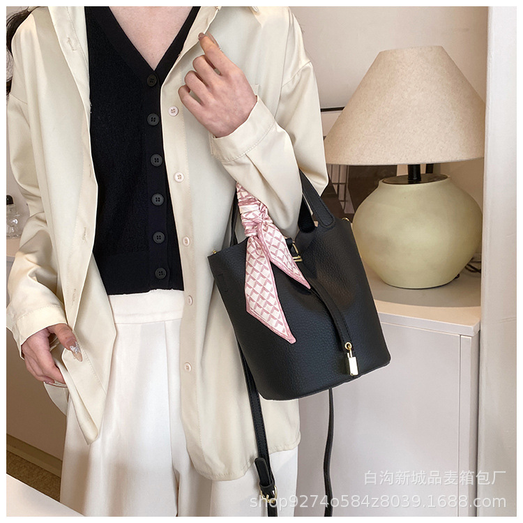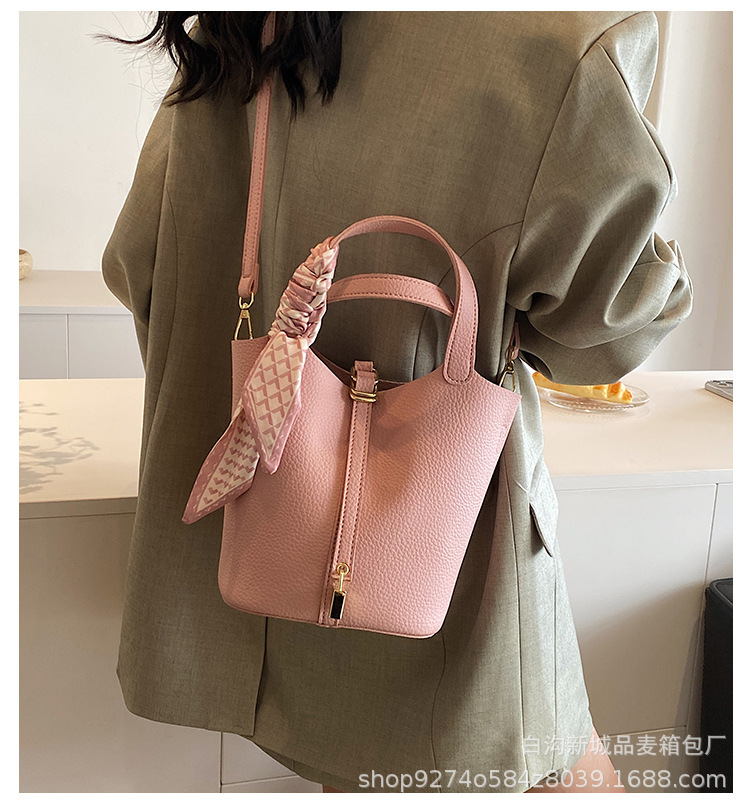 クロスボーダーファッションハンドバッグ、無地、2025年新作、フレンチスタイル、シンプルで爽やかなシングルショルダー/クロスボディバッグ、流行のバケットバッグ