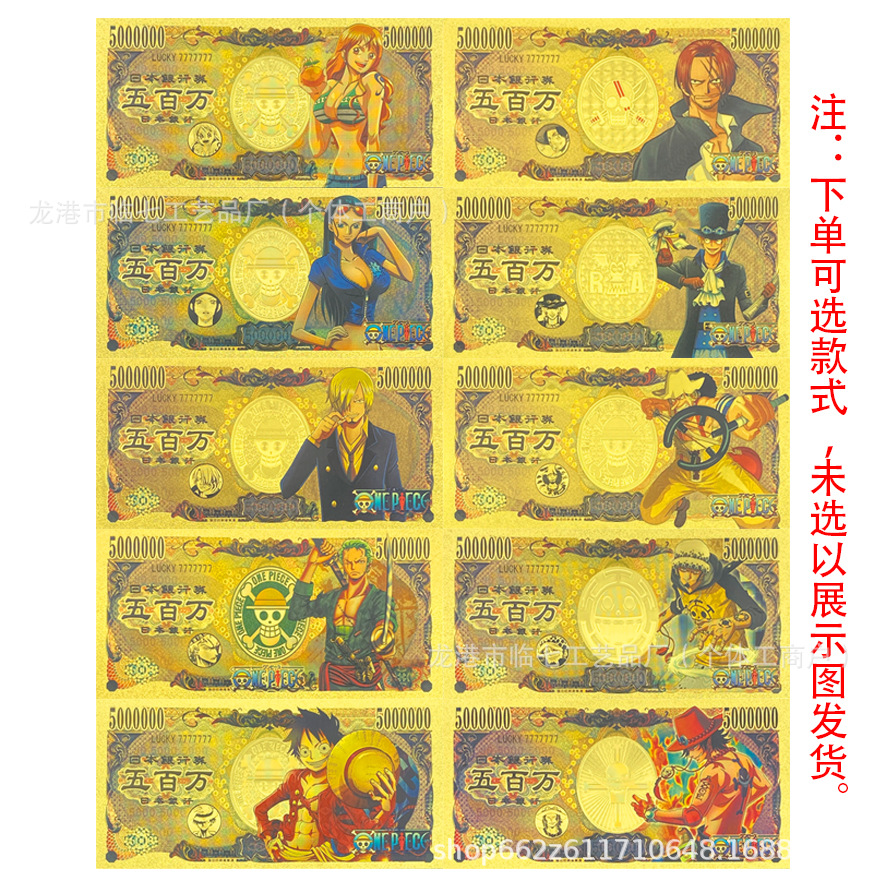 ワンピースのプラスチック製金箔記念紙幣、プラスチックカード、置物、コレクションなど、日番組漫画関連グッズ21種類を承ります。