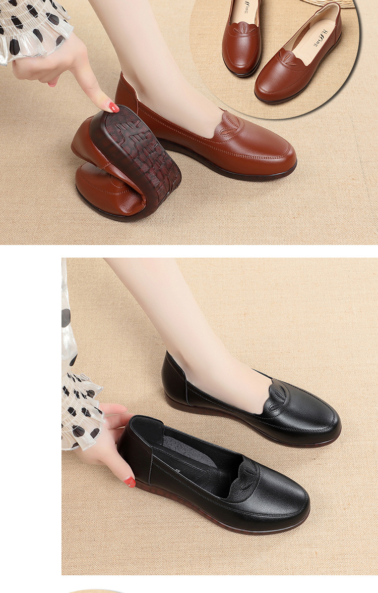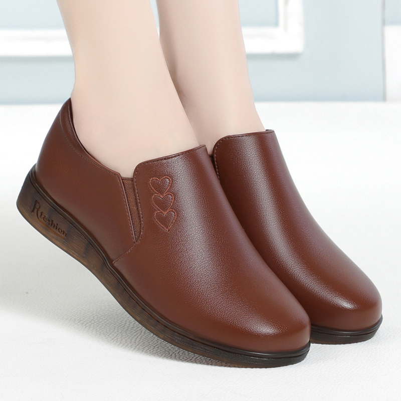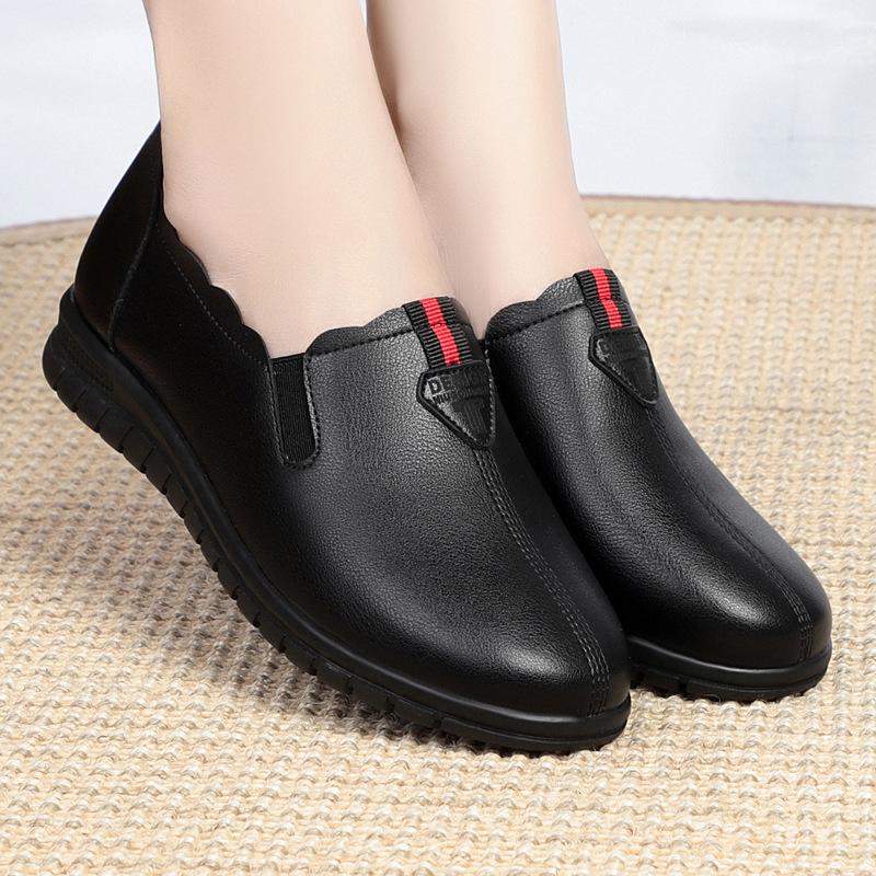 柔らかい皮の柔らかい底の快適な中で靴の滑り止めの坂と小さい靴の女性の2025春夏の新型の中高年のお母さんの靴