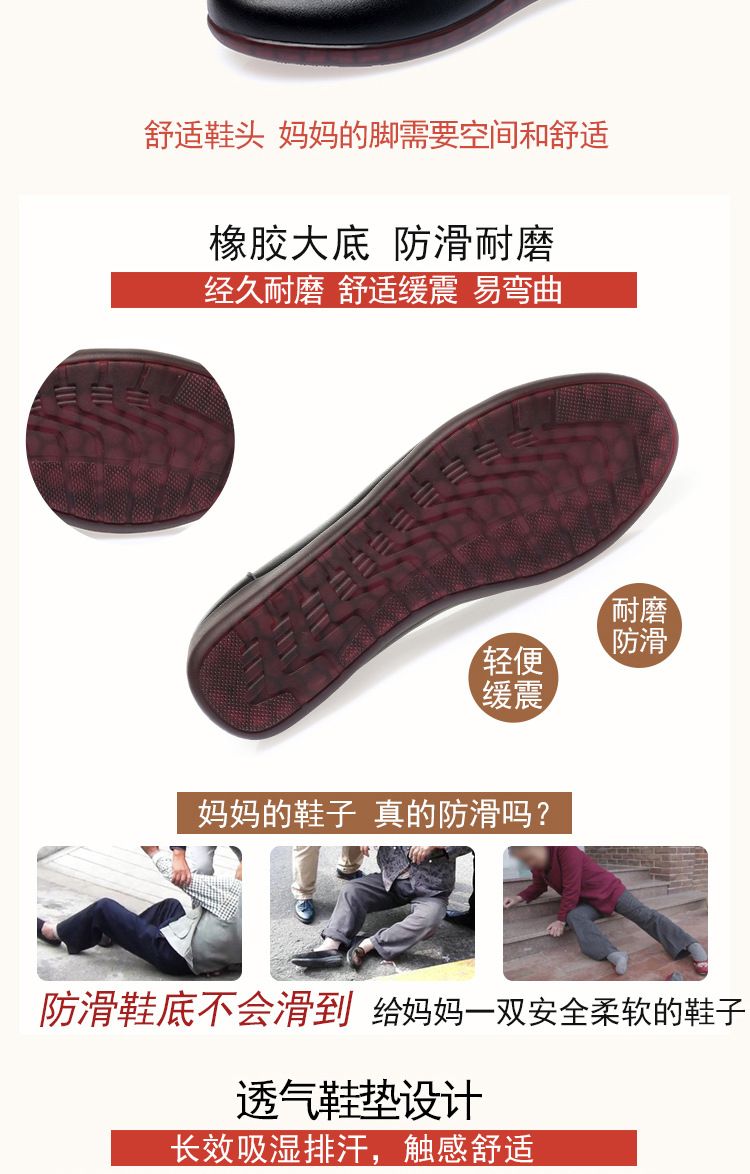 春と秋の新型ファッションの丸い頭の中で高齢者は快適で疲れない足の柔らかい底の本革の柔らかい面の靴のお母さんの靴を漕いでいます。