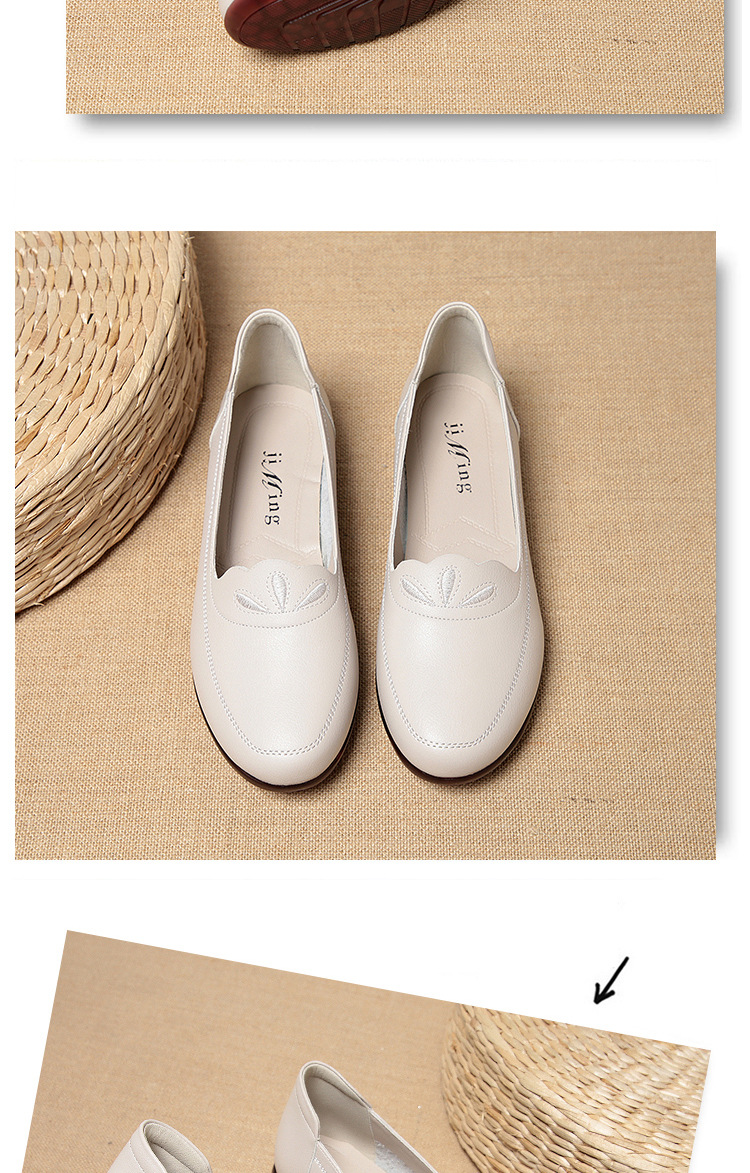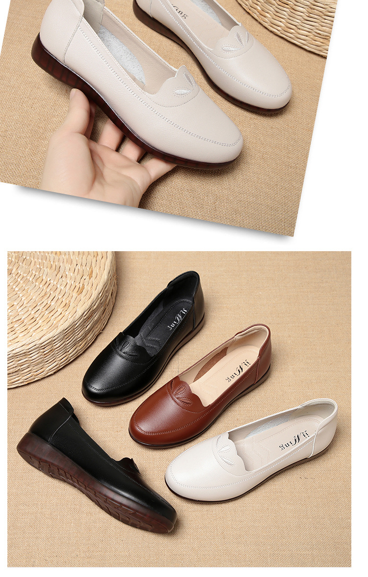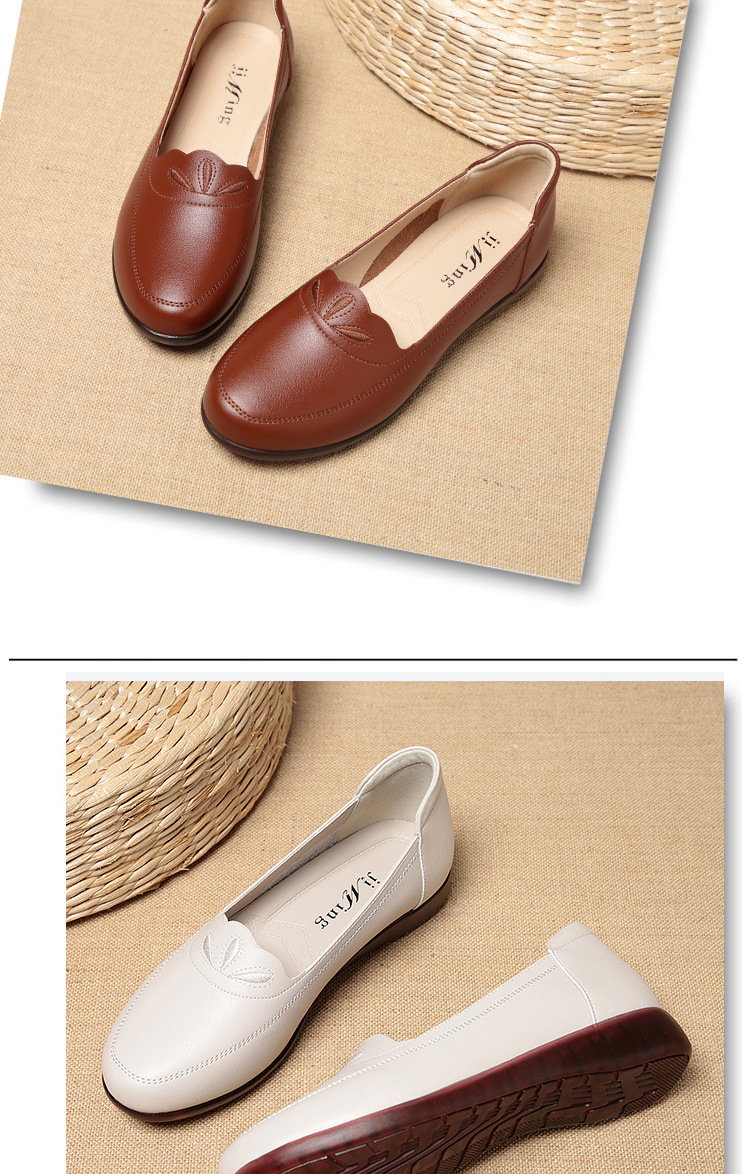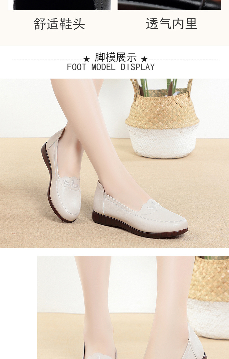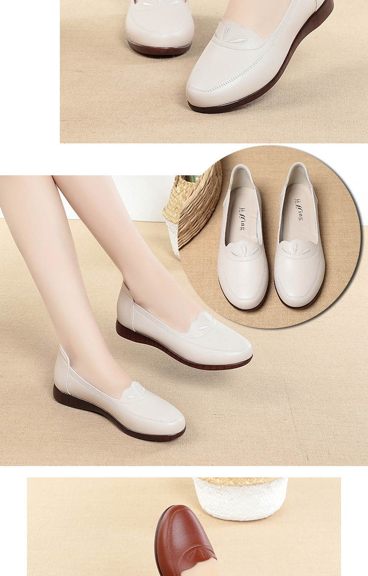 お母さんの靴、柔らかい革のフラットシューズ、女性用白い靴、春秋のフラットシューズ、多用途、中年・高齢女性向けの快適な革靴