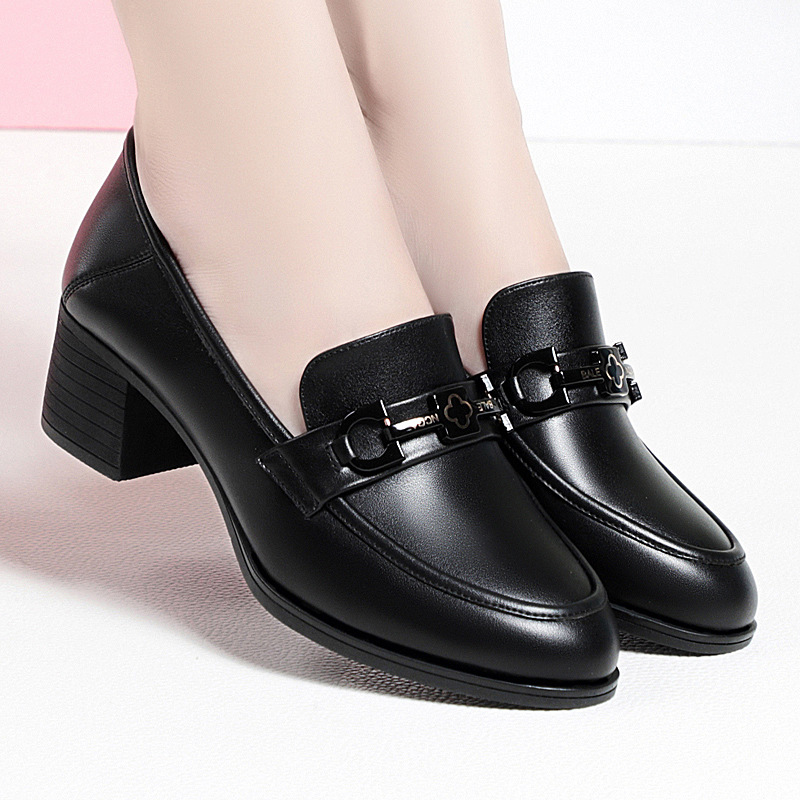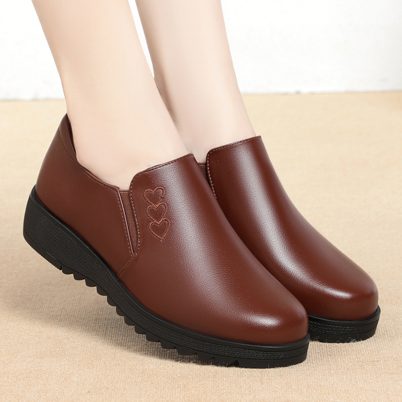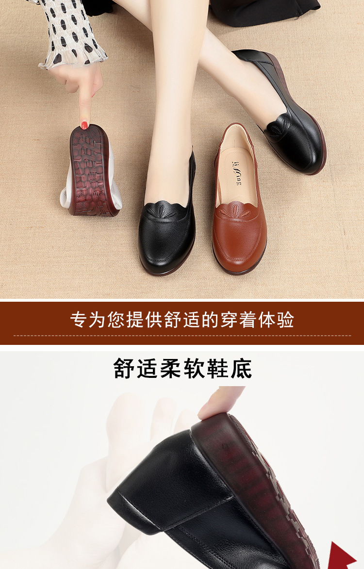 柔らかい底のマザーズシューズ 2025 春と秋の新しい女性の革靴厚いヒール快適な靴中高年女性の革靴