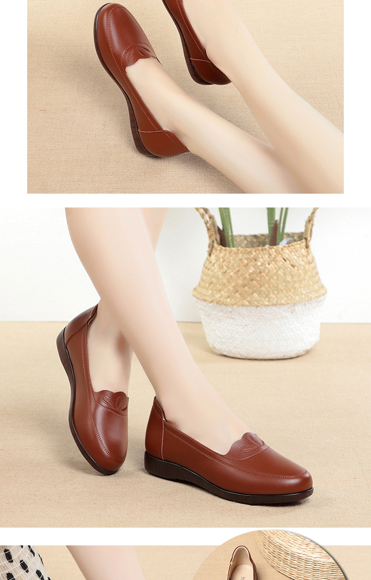 柔らかい底の柔らかい皮の太いかかとの中で靴の中年のお母さんの靴の2024の新型の春秋の通勤の百合のカジュアルな靴の女性