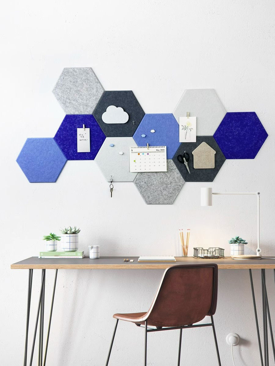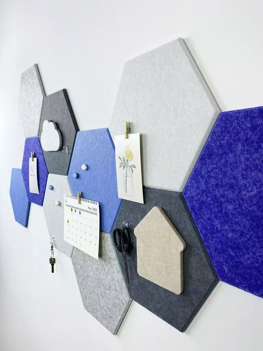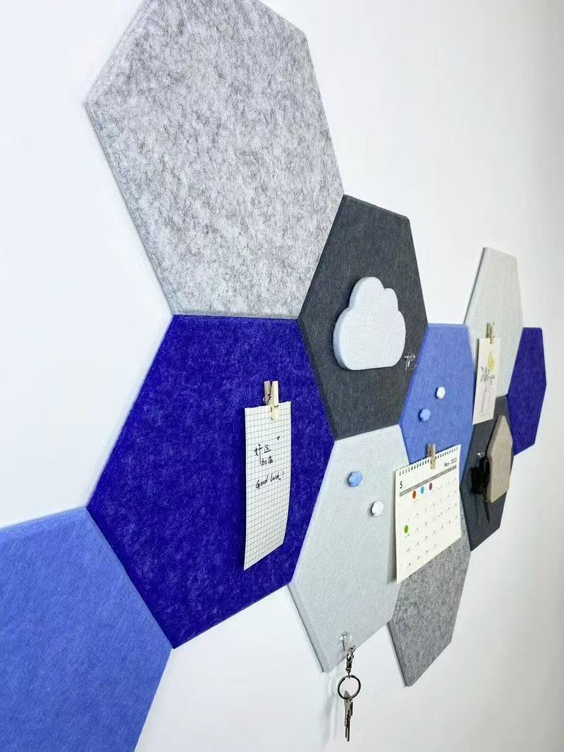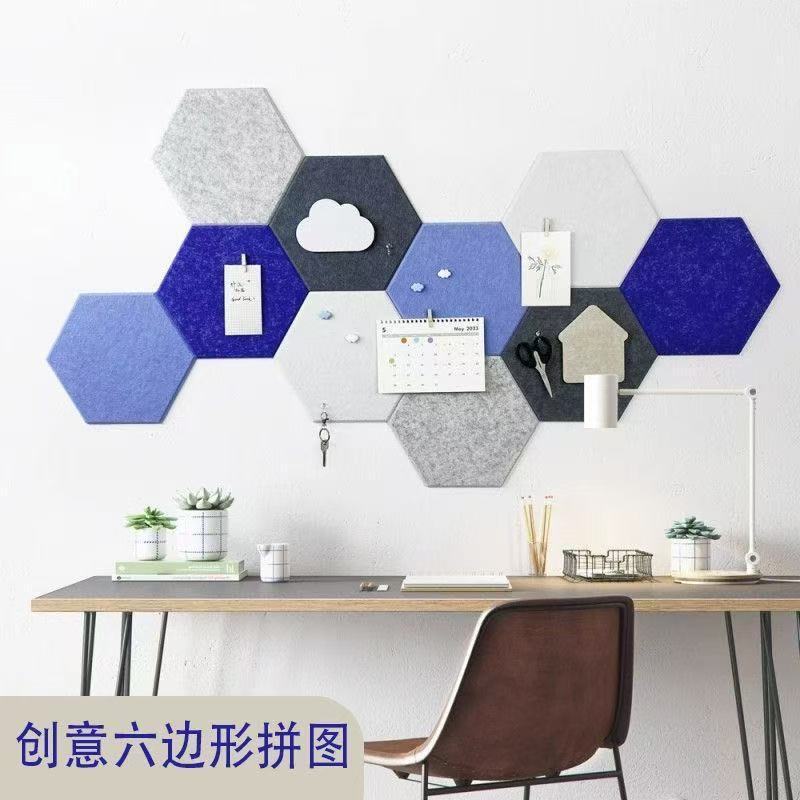 六角形のフェルトの壁は寮を貼って醜い客間の背景の壁の写真を隠します。