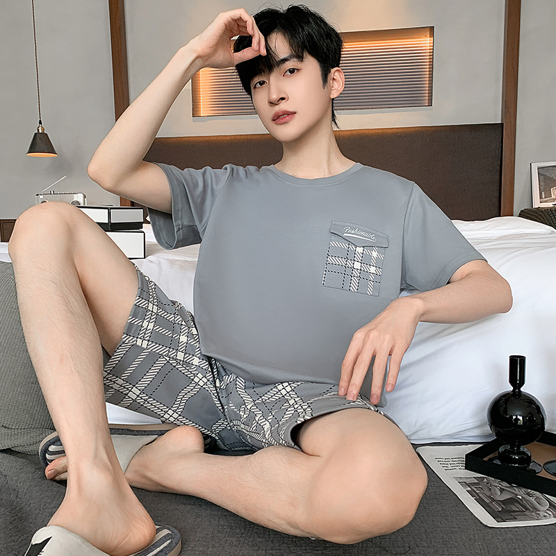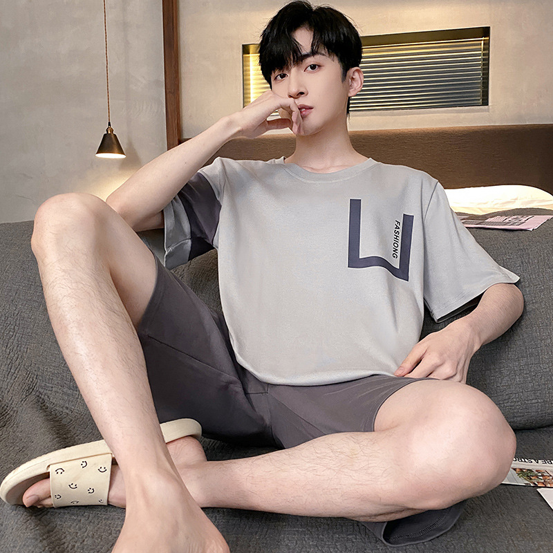 男性パジャマカジュアル夏快適シンプル半袖大サイズ男性青年ホームウェアは新しいスーツを着ることができる
