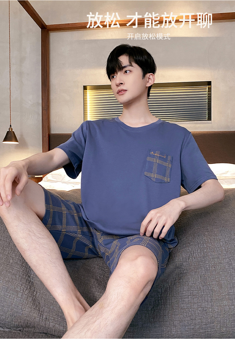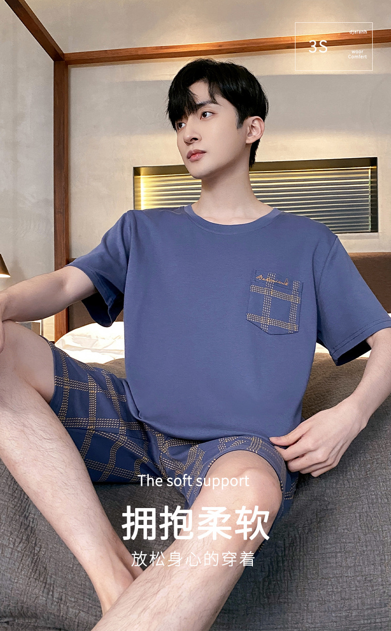 モーダルパジャマ男性夏新商品プルオーバー半袖ショートパンツゆったり大きいサイズシンプルカジュアルホームウェアパジャマ