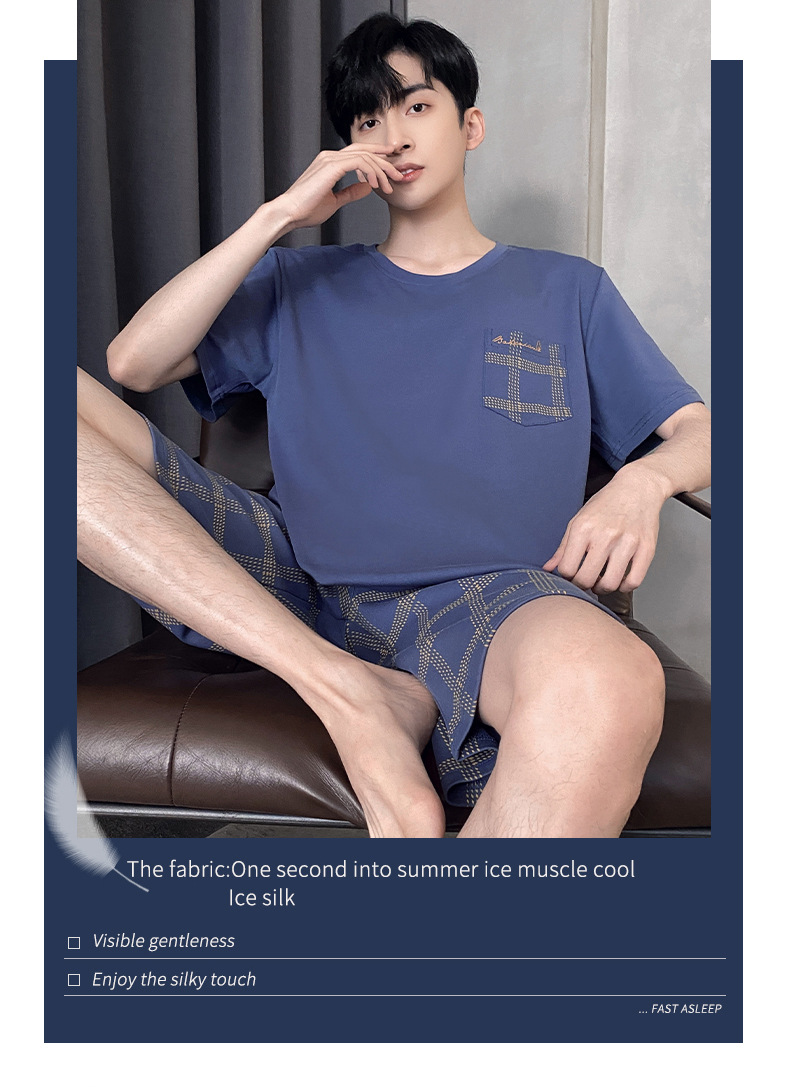 氷糸ねじ丸首半袖半ズボンパジャマ男性夏の涼感カバー