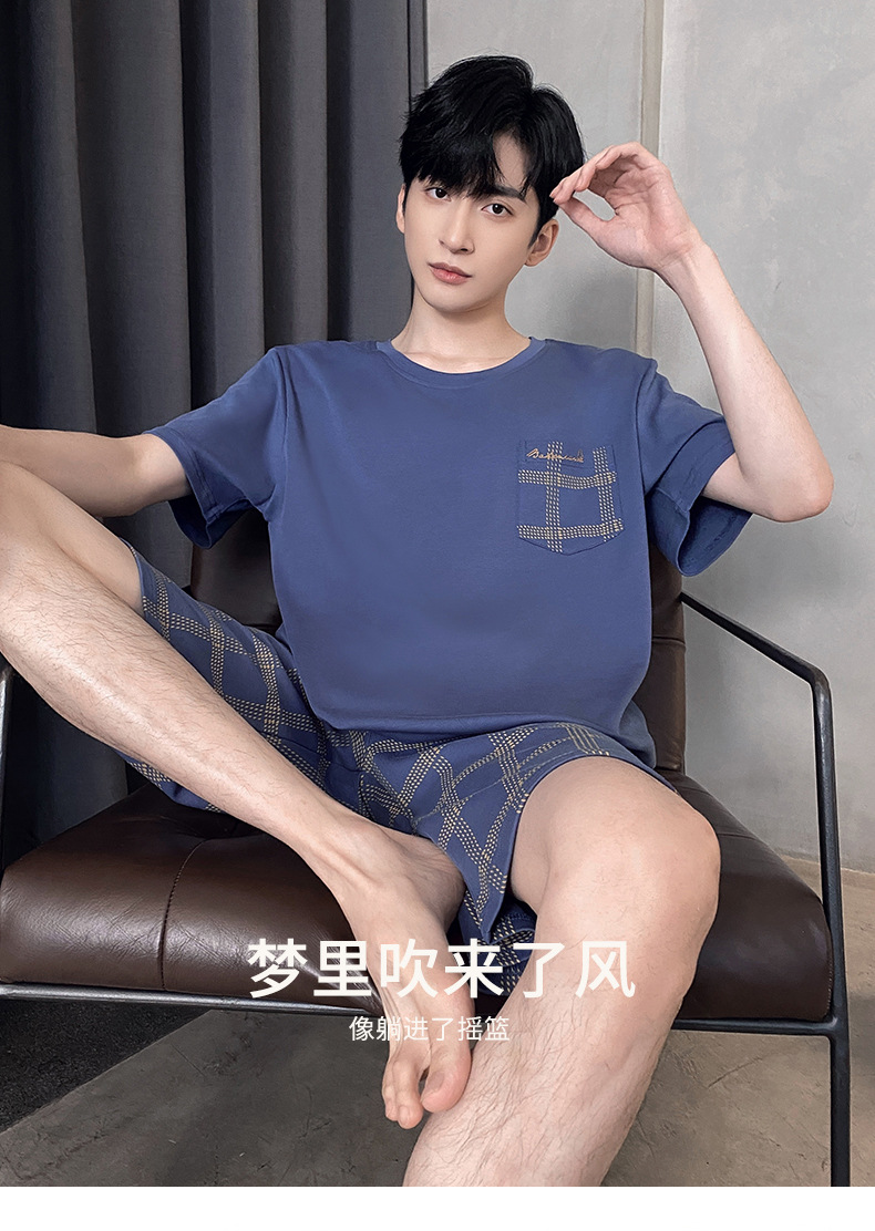 パジャマ男の夏の新型半袖半ズボンの薄いタイプはシンプルでカジュアルです。
