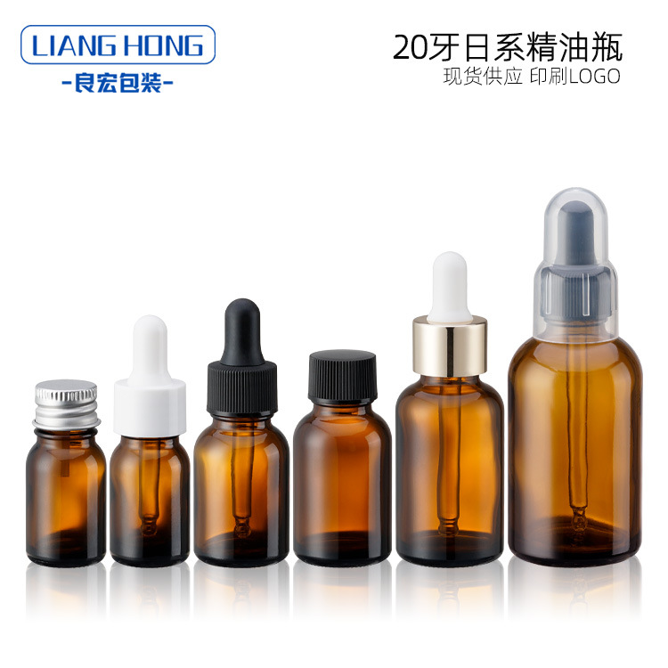 现货10ml-60ml矮胖20牙茶色精油瓶 精华滴管瓶 化妆品分装空瓶子