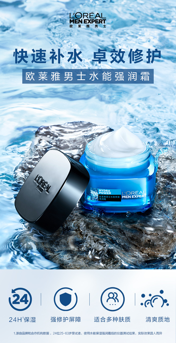 欧莱雅(LOREAL)男士面霜强润霜50ml擦脸抹脸霜男友礼物四季通用