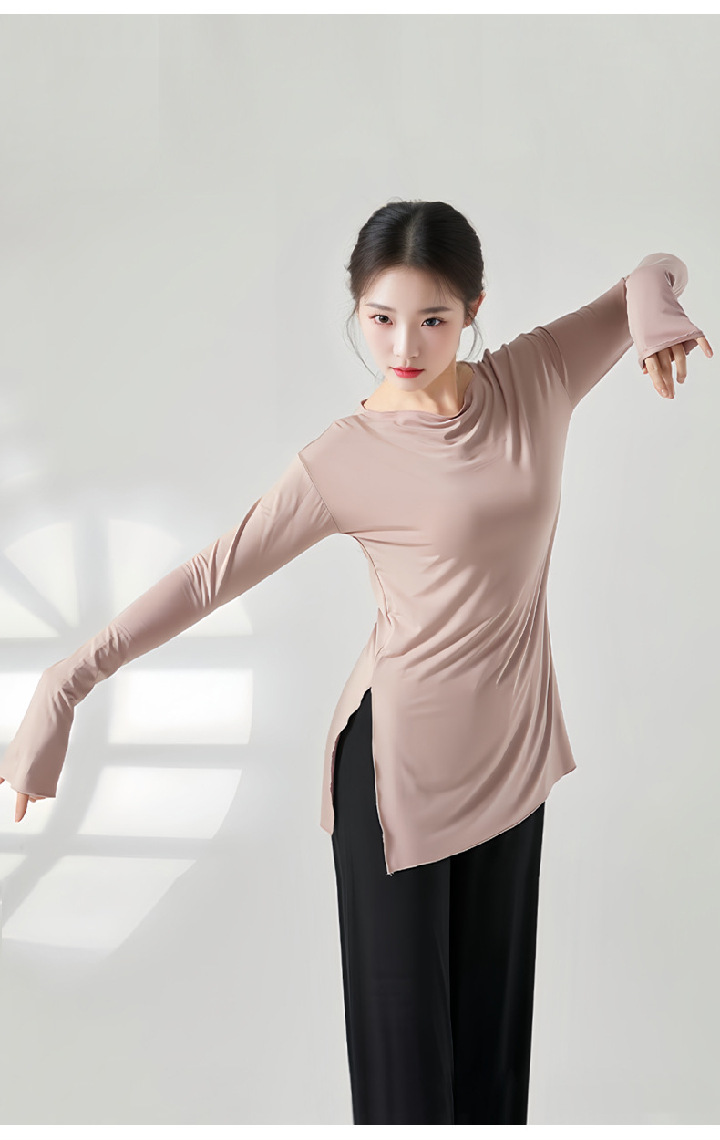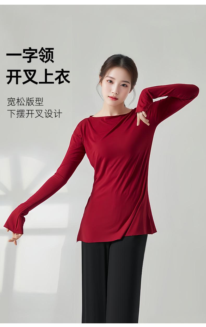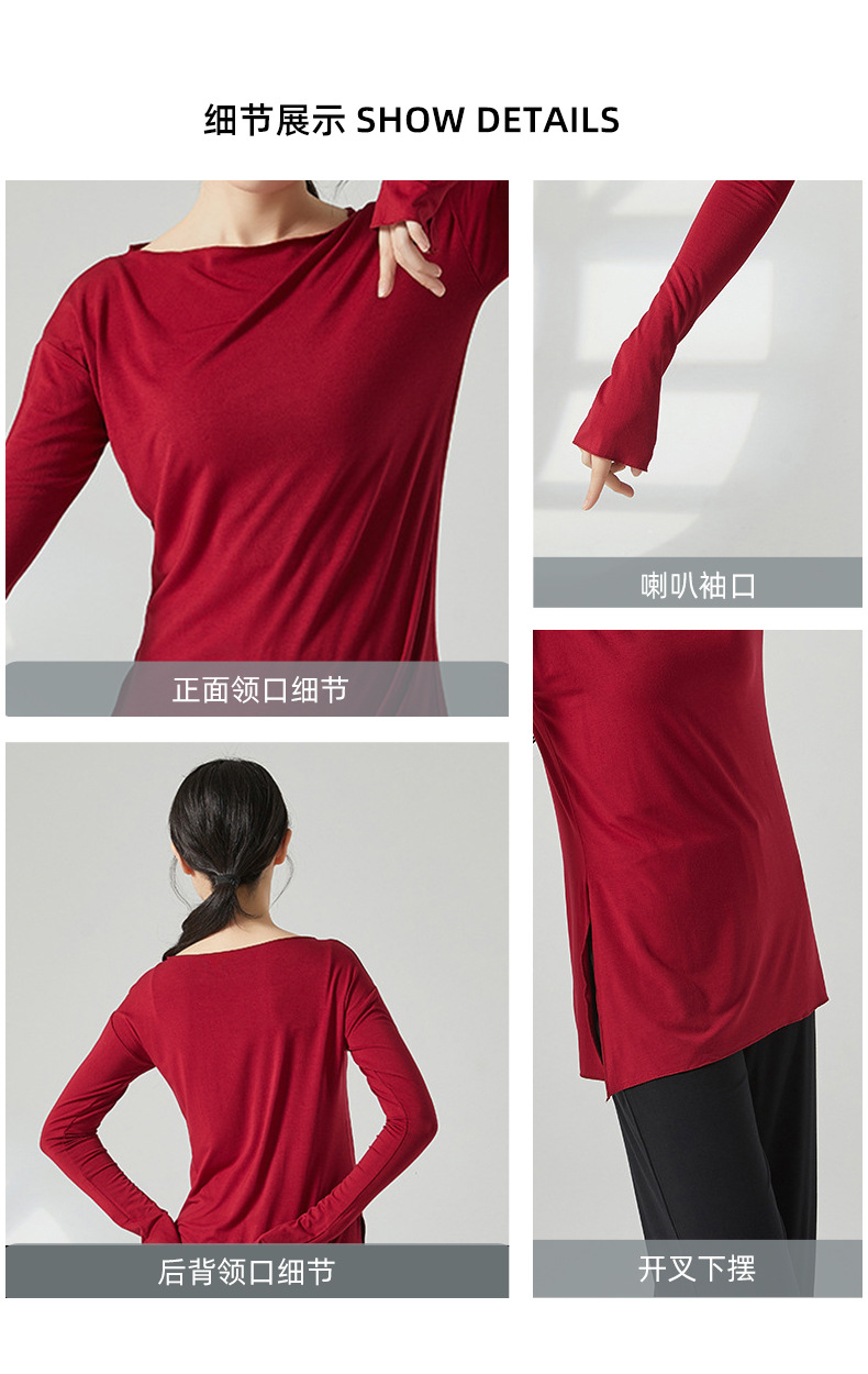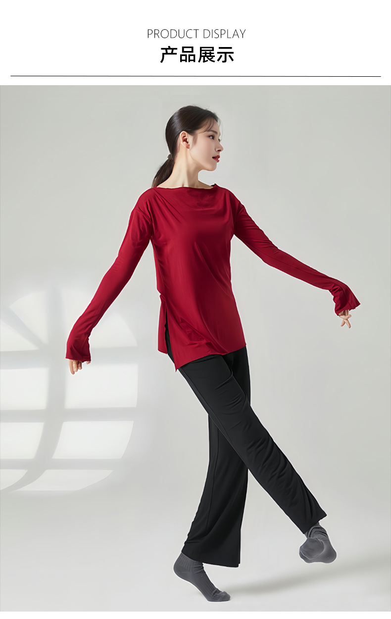 赤いダンスの靴のダンスの現代のダンスの服の女性の現代のダンスのゆったりしている訓練服の長袖の上着の長いタイプの基の訓練服の3645
