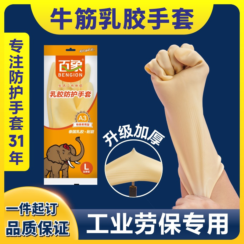 百象厨房厚手防水食器洗い家事労働保護手袋耐摩耗性丈夫家庭用牛筋天然ラテックス手袋