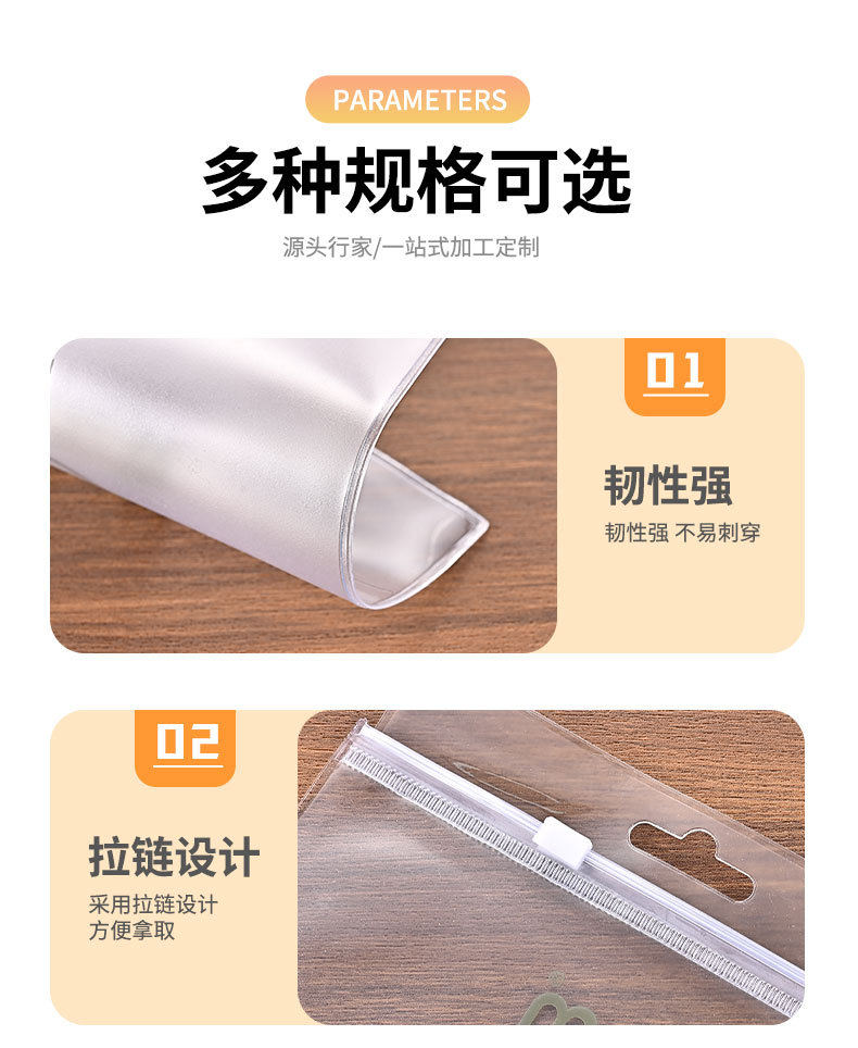 透明つや消しpvcジッパー袋カスタムスポット文房具袋白色化粧品ファイル収納袋カスタム