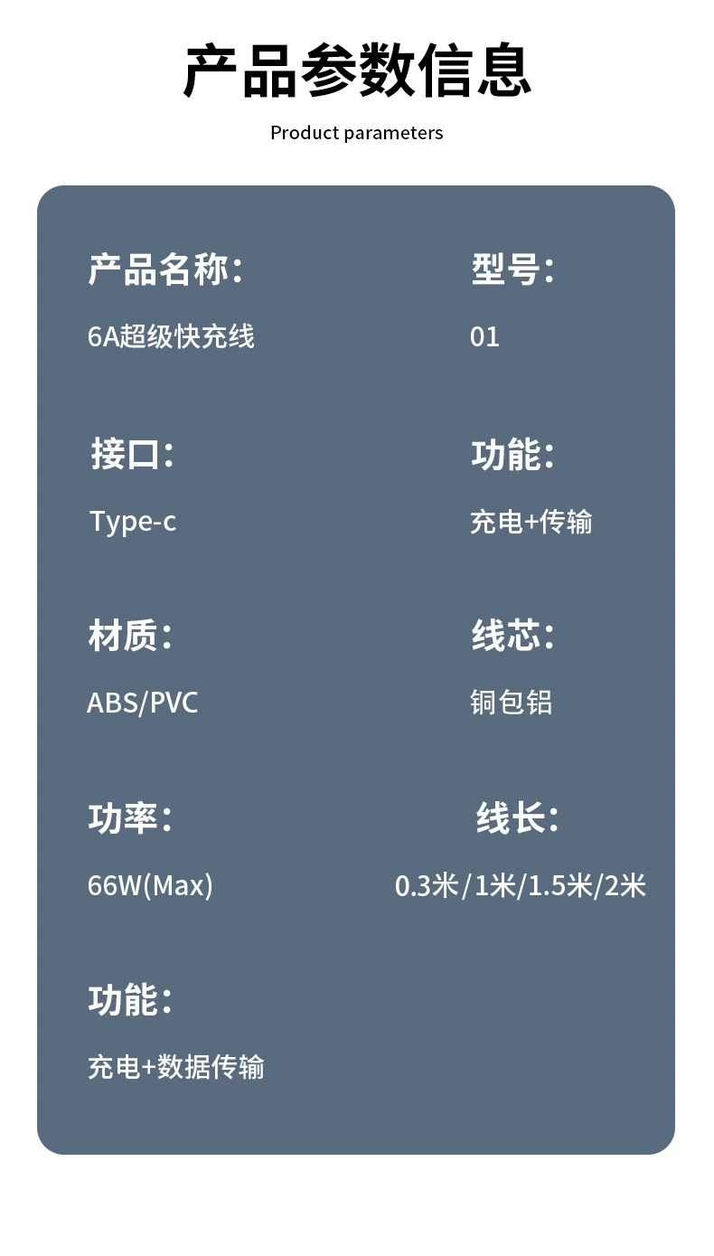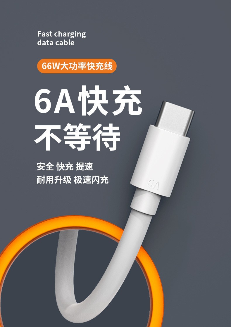 Type-cシングルヘッドデータ線6aフラッシュ充電typecは華為携帯電話充電線安卓快充台形に適している
