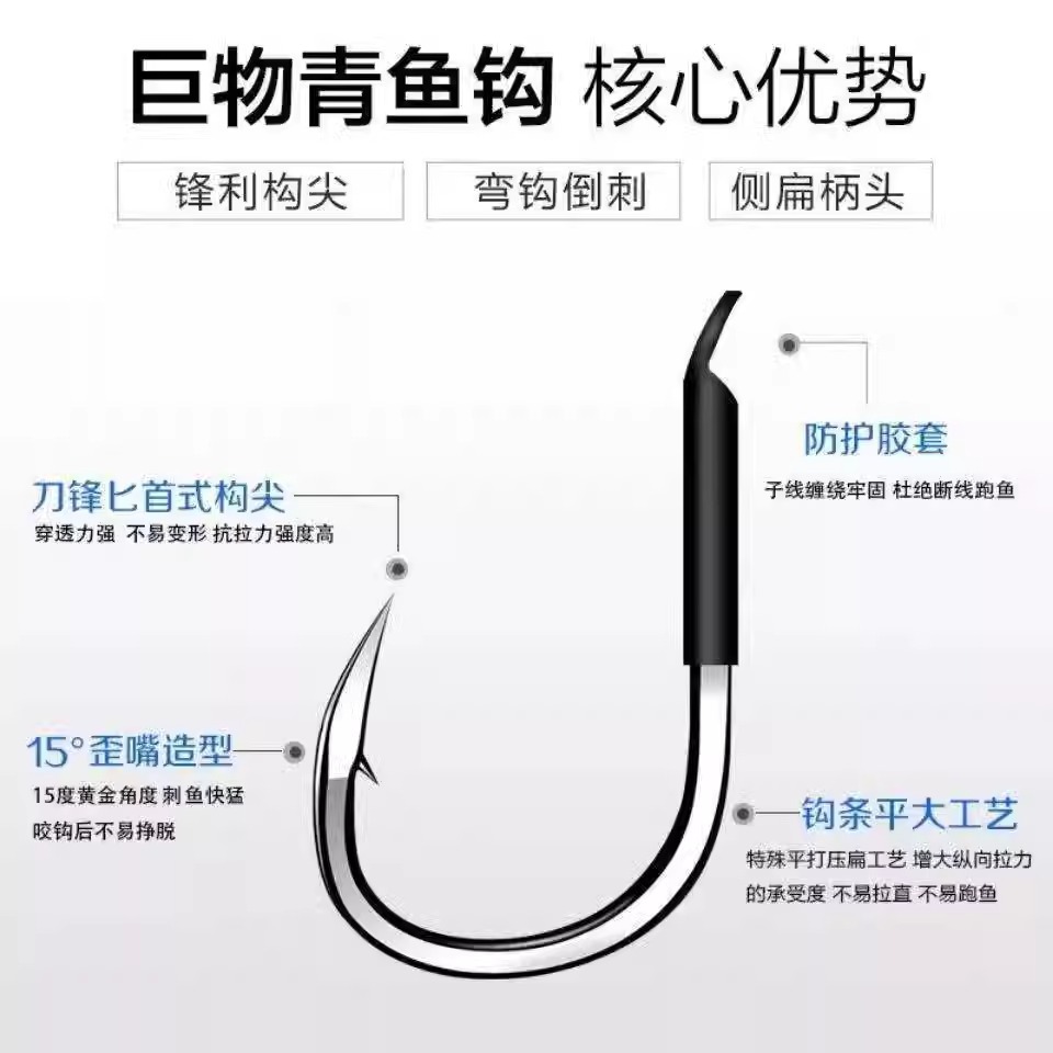 青魚大物子線ダブルフック完成品鉛フリー子線補強太くゆがんだ刃巨大物対フック黒坑大魚