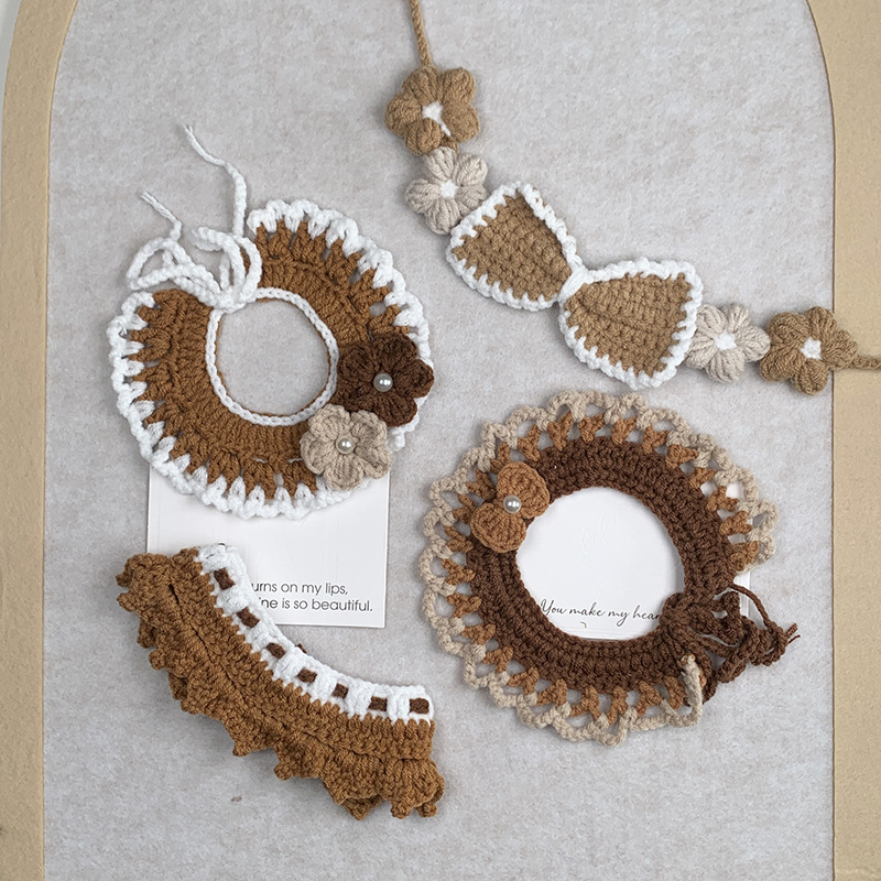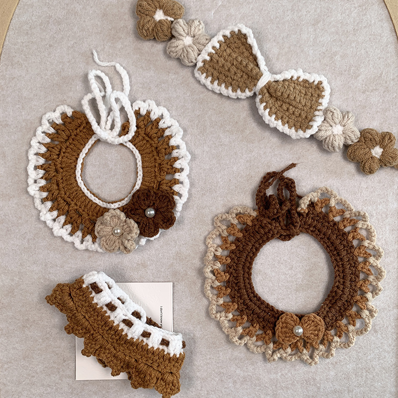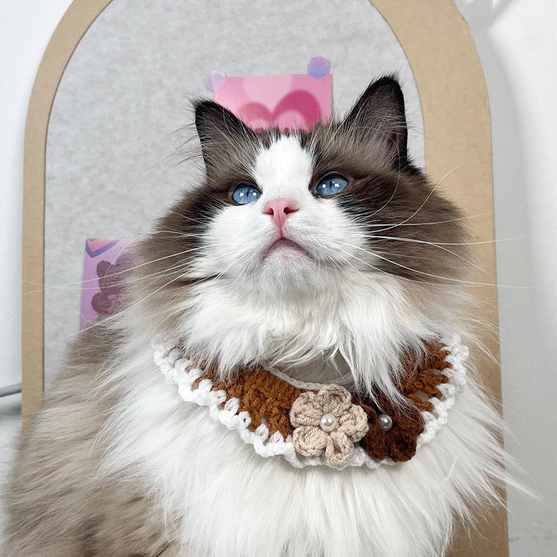 インスタイル手編み猫首輪ペット首輪フレッシュパールよだれかけ子猫首輪小型犬首輪